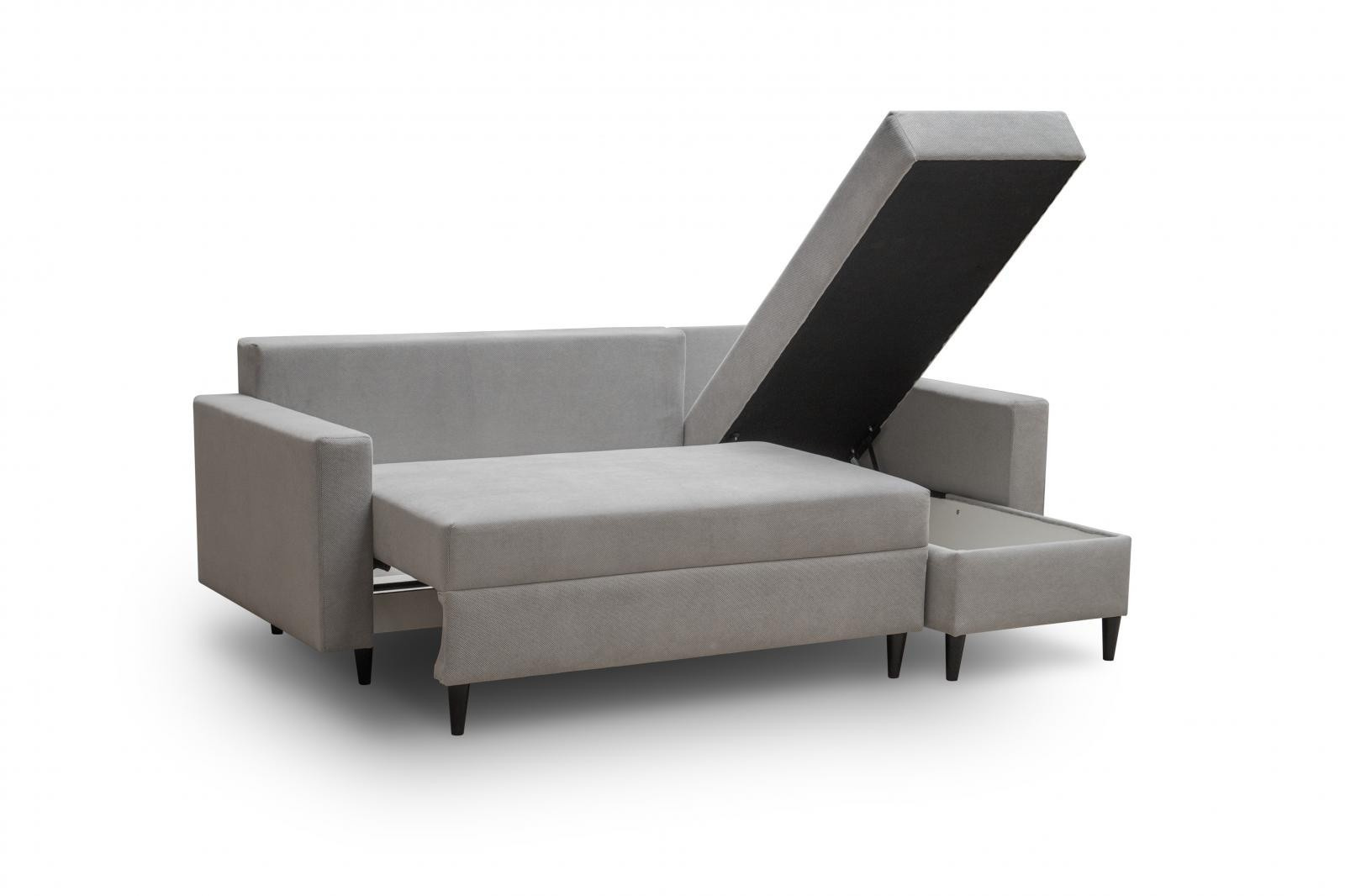 Carine je moderní rohová sedací souprava s nadčasovým designem. Její předností je pohodlí, praktičnost a univerzální použití. Můžete si ji podle potřeby sestavit jako levou nebo pravou, což je výhoda při zařizování obývacího pokoje. Nemusíte přemýšlet do jakého rohu postavíte sedací soupravu, jednoduše ji podle potřeby přizpůsobíte. Pohodlí při sezení zajišťuje kombinace pružin bonell s kvalitní PUR pěnou a velké opěrné polštáře, které jsou odnímatelné, takže si je můžete přizpůsobit svým potřebám. Praktickou stránkou sedací soupravy je úložný prostor a možnost rozložení k občasnému přespání Vaší návštěvy. Sedací souprava je potažena kvalitní látkou Mellow a nabízíme ji v několika odstínech. Správná barva sedací soupravy je vyobrazena v úvodních fotografiích. Ostatní fotografie jsou ilustrační.