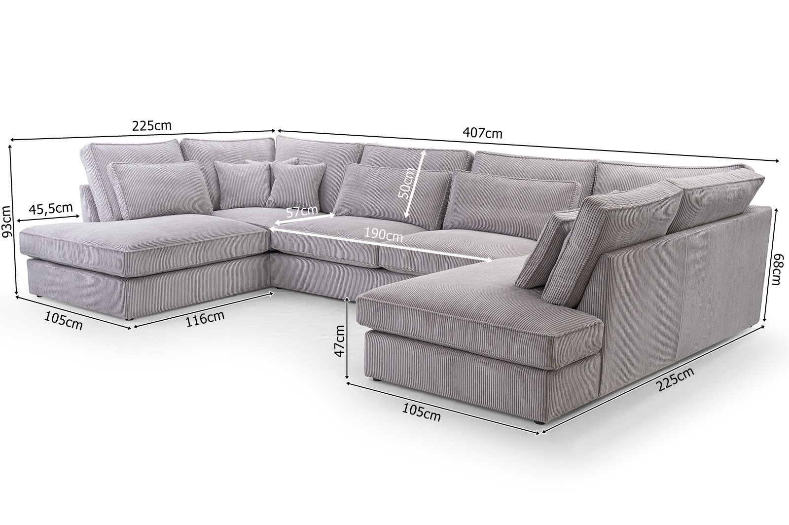 Polštáře jsou velmi pohodlnou součástí sedacích souprav. Jejich velké množství symbolizuje dokonalý relax. Sedací souprava Carny je tedy pro ty, kteří si rádi užijí relax nejen po náročném dni, skvělou volbou. Velkou předností je obrovský prostor pro sezení a odpočinek. Všechny polštáře jsou volně ložené a můžete je přizpůsobit svému pohodlí. Výplň sedáku tvoří pružiny typu faliste v kombinaci s pěnou T30 a HR 35/45. Sedací souprava je celočalouněná, takže ji můžete umístit do prostoru. Sedací souprava není rozkládací, ale po sejmutí polštářů, vznikne dostatečně velký prostor k občasnému přespání. Cena je uvedena za sedací soupravu včetně polštářů. Vyobrazené dekorace nejsou v ceně. Vlivem nastavení monitorů, nebo displejů telefonů, se zobrazení barev na fotografii může od skutečnosti lišit.