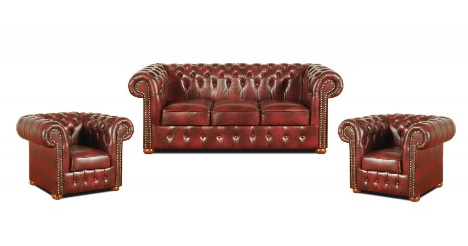 Sedací souprava Chesterfield Classic 3+1+1 kůže bordó