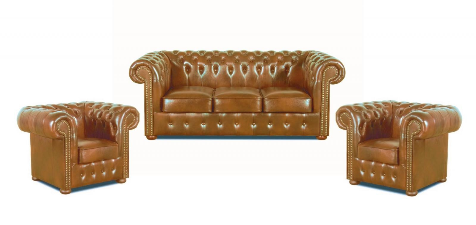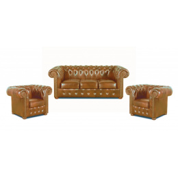 Sedací souprava Chesterfield Classic 3+1+1 kůže koňak