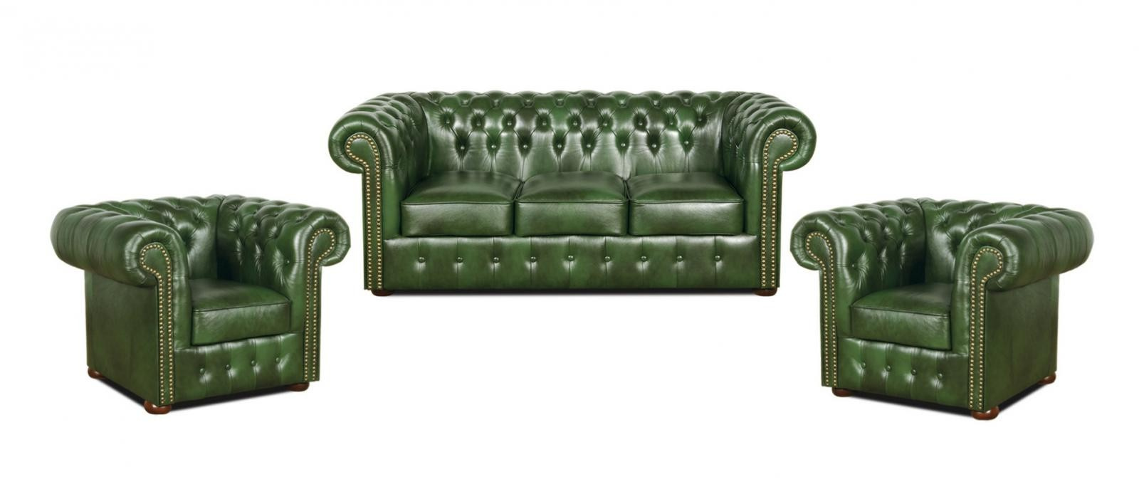 Sedací souprava Chesterfield Classic 3+1+1 kůže zelená