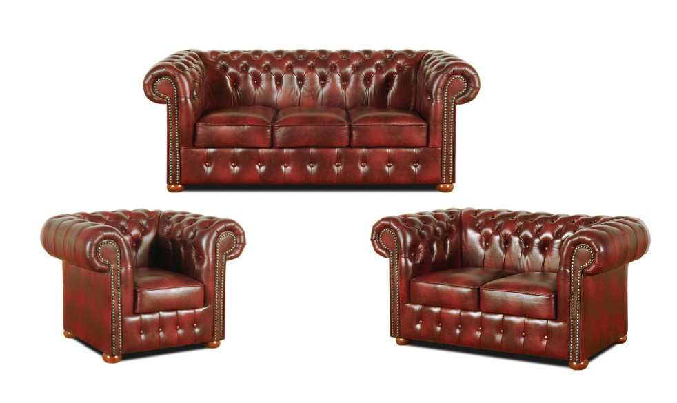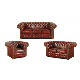 Sedací souprava Chesterfield Classic 3+2+1 kůže bordó