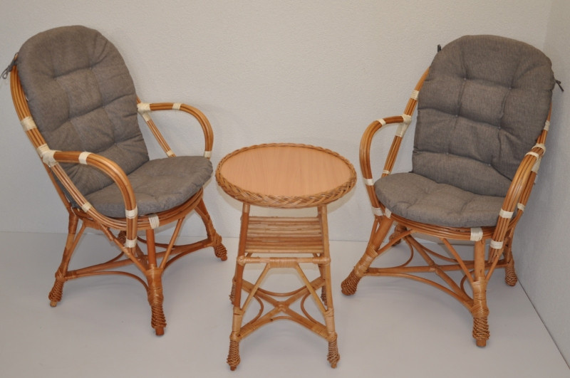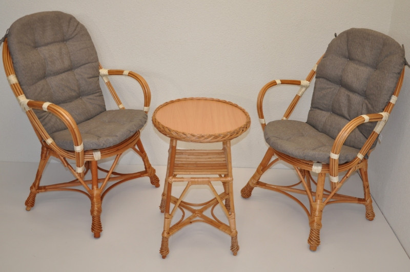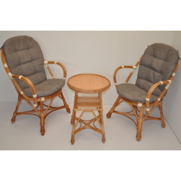 Sedací souprava sestávající se ze dvou křesel s područkami, stolku a sady polstrů. | Materiál sedací soupravy je přírodní vrbové proutí a masivní vrbové tyče. Barva sedací soupravy Dian je přírodní hnědá. Velikost křesla je 53x60x92 cm. Výška sedu je 43 cm. Nosnost křesla je 115 kg. Stolek má vprůměr 40 cm a je 63 cm vysoký. Polstry na tuto sedací soupravu jsou vyrobeny v České republice. Polstry jsou vyrobeny z kvalitní látky a vyznačují se vysokou kvalitou zpracování.Polstry pro nás vyrábí firma AXIN Cuschions s.r.o., která zaměstnávávýhradně místní vyučené švadleny z České republiky. Tímto způsobem sesnažíme podporovat výrobu a zaměstnanost v naší republice. > > >