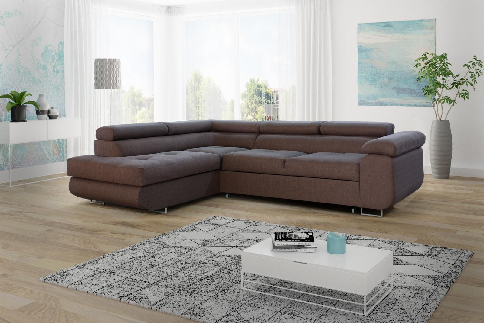 Sedací souprava Dolly se stane příjemným centrem odpočinku, nebo setkání s rodinou a přáteli. Je velmi pohodlá, praktická a nabízí dostatek místa k sezení. Určitě se stane příjemným centrem odpočinku, nebo setkání s rodinou a přáteli. Praktickou stránku sedací soupravy zajišťuje možnost rozložení k příležitostnému přespání a také nepostradatelný úložný prostor. Pohodlí při sezení zajišťuje výplň sedáků, kterou tvoří kombinace pružin s kvalitní PUR pěnou. Při odpočinku, nebo sledování televize Vám zvýší pohodlí polohovací opěrky. Sedací souprava je potažena kvalitní látkou a má očalouněná i záda, takže ji můžete umístit i do prostoru. Stejnou potahovou látkou je také očalouněna i plocha pro spaní. Sedací soupravu nabízíme v levém i pravém provedení. Vyobrazené doplňky a dekorace nejsou v ceně. Zobrazení barev na fotograii se může od skutečnosti lišit.