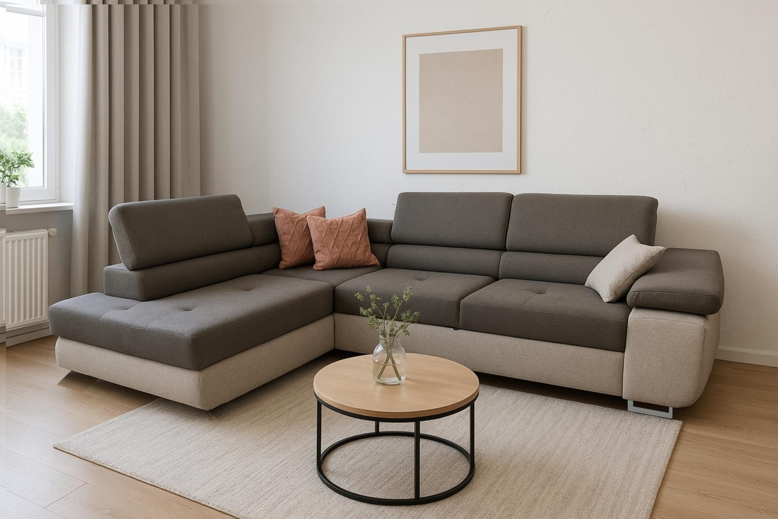Sedací souprava Dolly se stane příjemným centrem odpočinku, nebo setkání s rodinou a přáteli. Je velmi pohodlná, praktická a nabízí dostatek místa k sezení. Praktickou stránku sedací soupravy zajišťuje možnost rozložení k příležitostnému přespání a také nepostradatelný úložný prostor. Pohodlí při sezení zajišťuje výplň sedáků, kterou tvoří kombinace pružin s kvalitní PUR pěnou. Při odpočinku, nebo sledování televize Vám zvýší pohodlí polohovací opěrky. Sedací souprava je potažena kvalitní látkou a bude dodána v kombinaci barev, které jsou na úvodní fotografii. Sedací souprava má očalouněná i záda, takže ji můžete umístit i do prostoru. Stejnou potahovou látkou je také očalouněna i plocha pro spaní. Sedací soupravu nabízíme v levém i pravém provedení. Vyobrazené doplňky a dekorace nejsou v ceně.