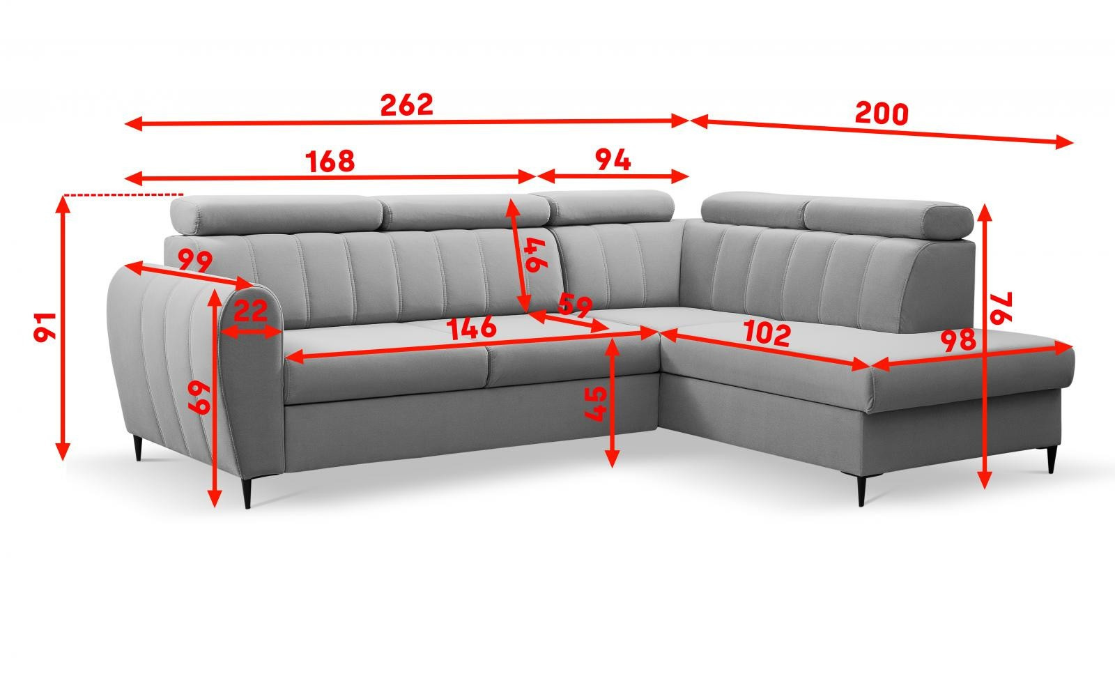 Díky jednoduchému rozkladu získáte lůžko pro hosty a praktický úložný prostor vám pomůže udržet pořádek. Kvalitní pěna v kombinaci s vlnitými pružinami zajistí měkké posezení, ale zároveň stálost tvaru po dlouhá léta. Pohodlí při odpočinku, sledování televize nebo posezení s přáteli zvyšují polohovací opěrky, které si můžete nastavit tak, aby pro vás sezení bylo co nejpohodlnější.