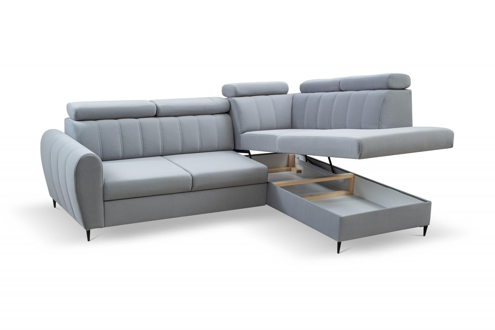 Sedací souprava Faria osloví každého, kdo preferuje moderní vzhled a zároveň pohodlí a praktičnost. Je potažena kvalitní potahovou látkou s kontrastním prošitím. Díky svým rozměrům je vhodná i do menších pokojů. Sedací souprava má praktický úložný prostor a je rozkládací, plocha po rozkladu je 195 x 128 cm. Pohodlí při sezení zajišťuje výplň sedáků, kterou tvoří kombinace pružin faliste s kvalitní PUR pěnou. Komfort a pohodlí při odpočinku zvyšuje polohovací opěrka hlavy. Sedací souprava je potažena tkaninou Paros, která je odolná vůči světlu, tudíž nedochází k vyblednutí barev. Látka je jemná, na dotek hladká, podobná plyši, má jemný třpytivý odlesk a nežmolkovatí. Sedací soupravu nabízíme na objednávku i v jiných potahových látkách, v levém i pravém provedení.