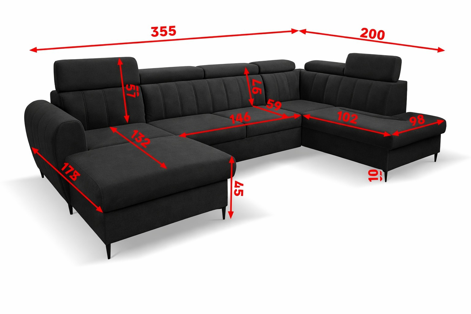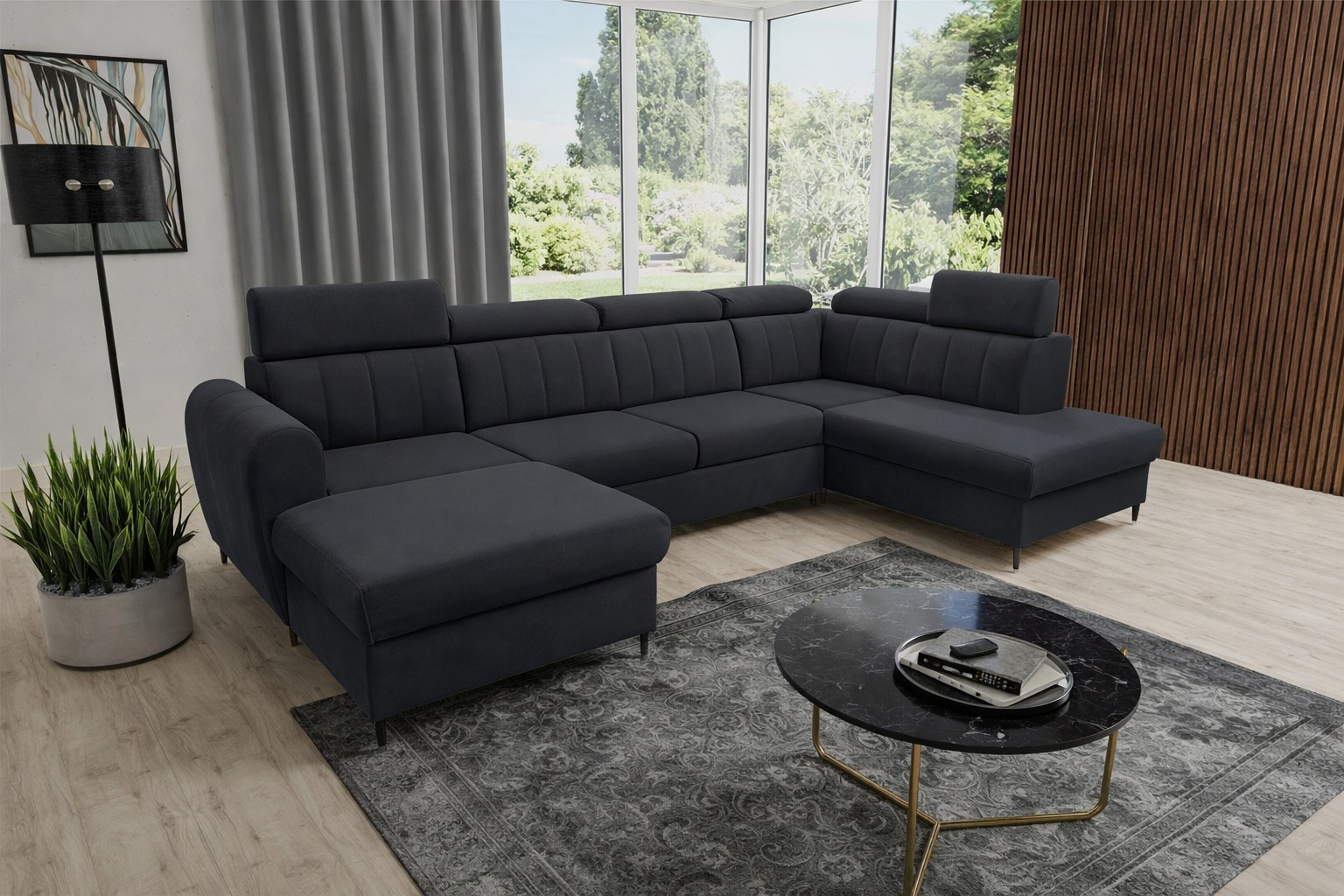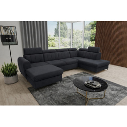 Sedací souprava Faria XL ve tvaru U osloví každého, kdo preferuje moderní vzhled a zároveň pohodlí a praktičnost. Je potažena kvalitní potahovou látkou s kontrastním prošitím. Sedací souprava je velmi pohodlná a dostatečně velká na posezení s přáteli, nebo rodinou. Pro případ, že se návštěva zdrží přes noc, je sedací souprava vybavena rozkladem, díky kterému sedací soupravu jednoduše přeměníte v prostorné lůžko. Sedací souprava má 2 praktické úložné prostory, které můžete využít např., na lůžkoviny. Pohodlí při sezení zajišťuje výplň sedáků, kterou tvoří kombinace pružin faliste s kvalitní PUR pěnou. Komfort a pohodlí při odpočinku zvyšuje polohovací opěrka hlavy. Sedací souprava je potažena tkaninou Kronos, která je odolná vůči světlu, tudíž nedochází k vyblednutí barev. Látka je jemná, na dotek hladká, podobná plyši, má jemný třpytivý odlesk a nežmolkovatí. Sedací soupravu nabízíme na objednávku i v jiných potahových látkách, v levém i pravém provedení, nebo také v provedení do L.