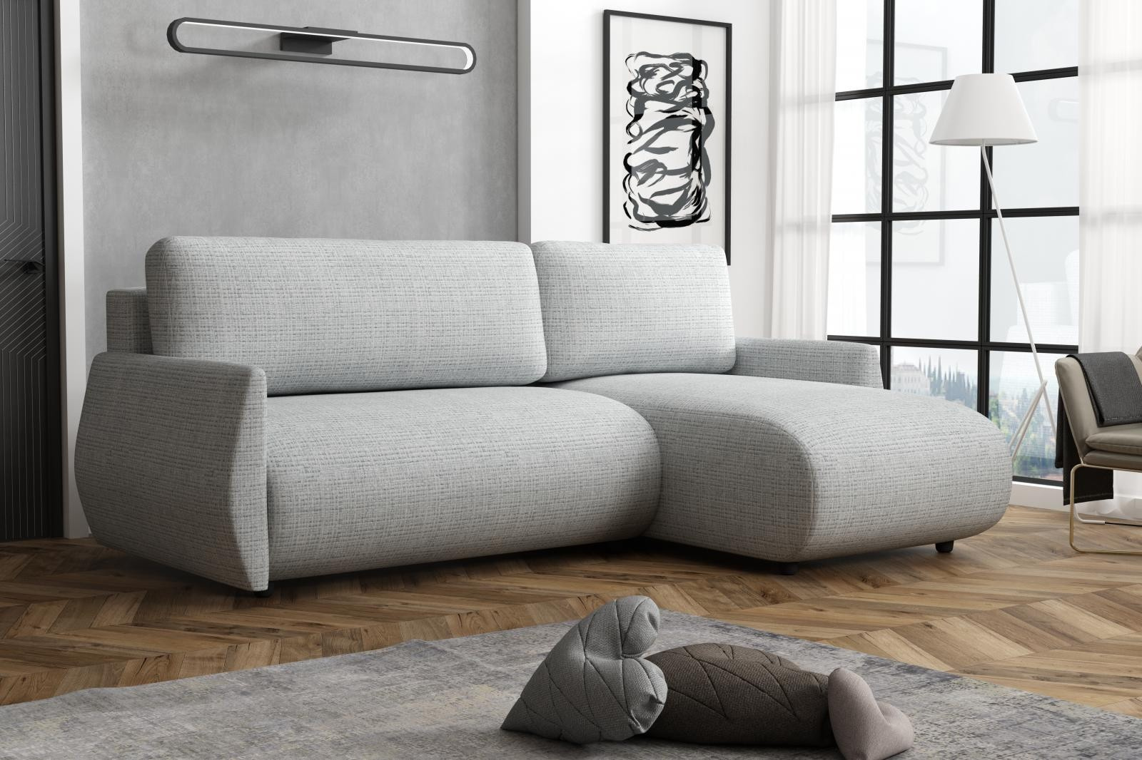 Velkou předností této sedací soupravy je univerzální možnost sestavení. Tzn. že podle potřeby můžete mít levou nebo pravou stranu, což je výhoda při zařizování obývacího pokoje. Nemusíte přemýšlet do jakého rohu sedací soupravu postavíte a jednoduše si ji podle potřeby přizpůsobíte.