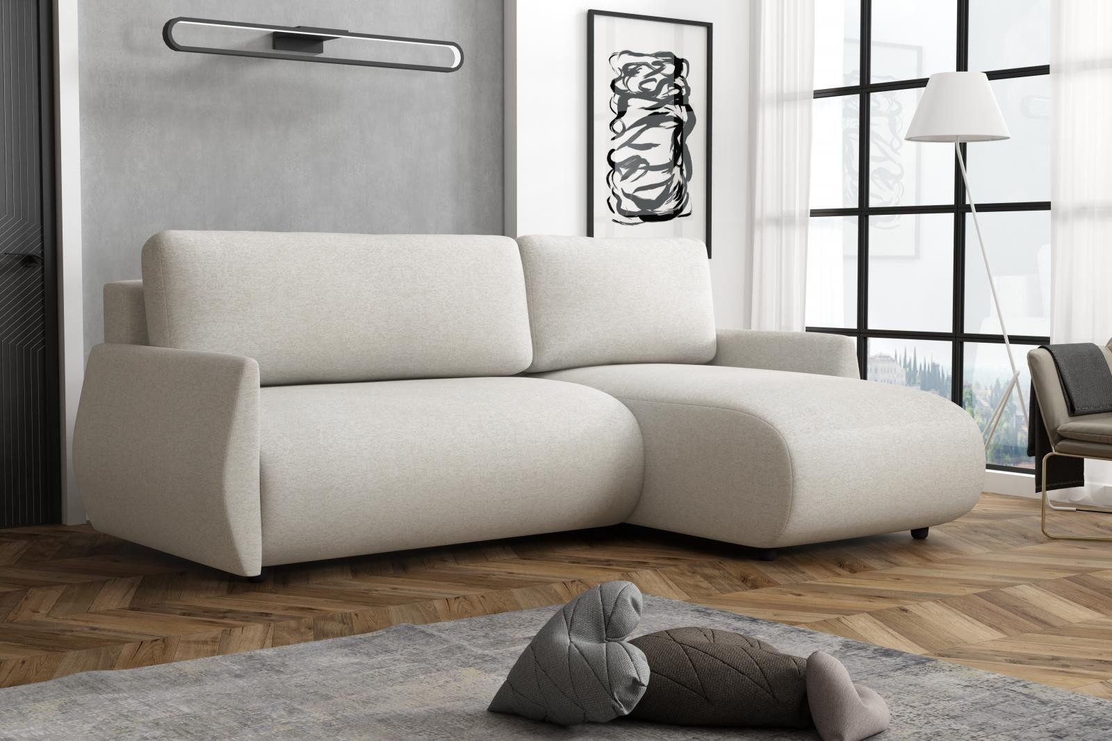 Velkou předností této sedací soupravy je univerzální možnost sestavení. Tzn. že podle potřeby můžete mít levou nebo pravou stranu, což je výhoda při zařizování obývacího pokoje. Nemusíte přemýšlet do jakého rohu sedací soupravu postavíte a jednoduše si ji podle potřeby přizpůsobíte.
