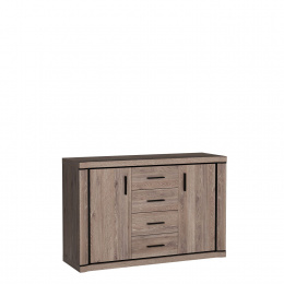 Prostorná komoda z kolekce Dallas, která usnadňuje každodenní organizaci. Komoda má čtyři velké zásuvky a dvě skříňky, každá s jednou policí, které rozdělují obrovský prostor a umožňují jeho správu. Nábytek zdobí černé vložky v podobě lamel, které dodávají komodě spoustu elegance a vnášejí do interiéru originální dekor. Kovové úchytky dokonale ladí s lamelami a vytvářejí zajímavou kombinaci, která mnohé překvapí. Komoda se bude hodit do obývacího pokoje, ložnice, ale i do kanceláře nebo pracovny. K dostání ve dvou barevných provedeních.