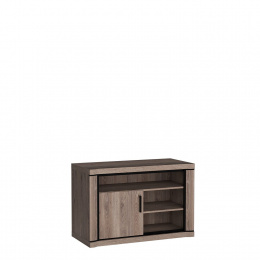 Krásná RTV skříňka ve tvaru krychle, která dokonale zapadá do trendů. Díky svému neobyčejnému vzhledu a vysoké funkčnosti se bude mezi vašimi blízkými dokonale vyjímat a navodí příjemnou atmosféru. Nábytek je vybaven třemi policemi, dvěma menšími a jednou větší, z nichž jedna je zakrytá skříňkou. Ideální místo pro všechny drobnosti, doplňky nebo užitečné předměty. Nezapomeňme ani na desku stolu, na které se budou skvěle vyjímat ozdoby a suvenýry. Kovové úchytky a okraje na čelech z něj dělají úchvatné aranžmá. K dostání ve dvou barvách.