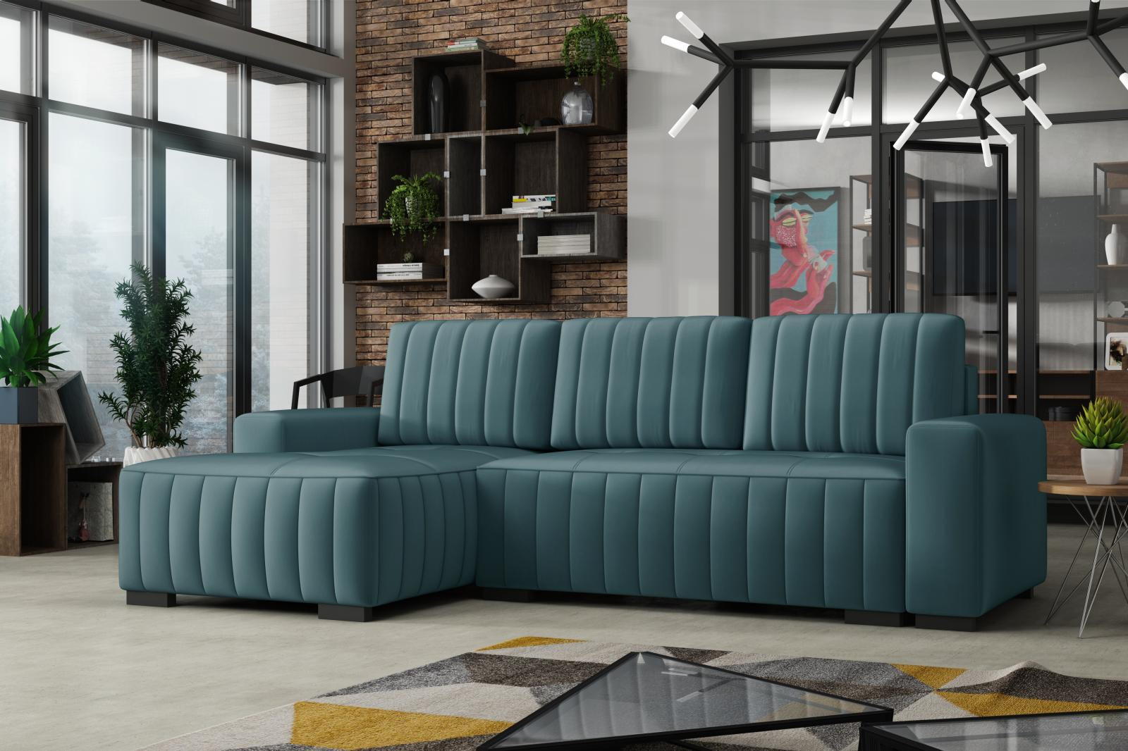 Rohová sedací souprava Hakim L - manila38/tyrkysová