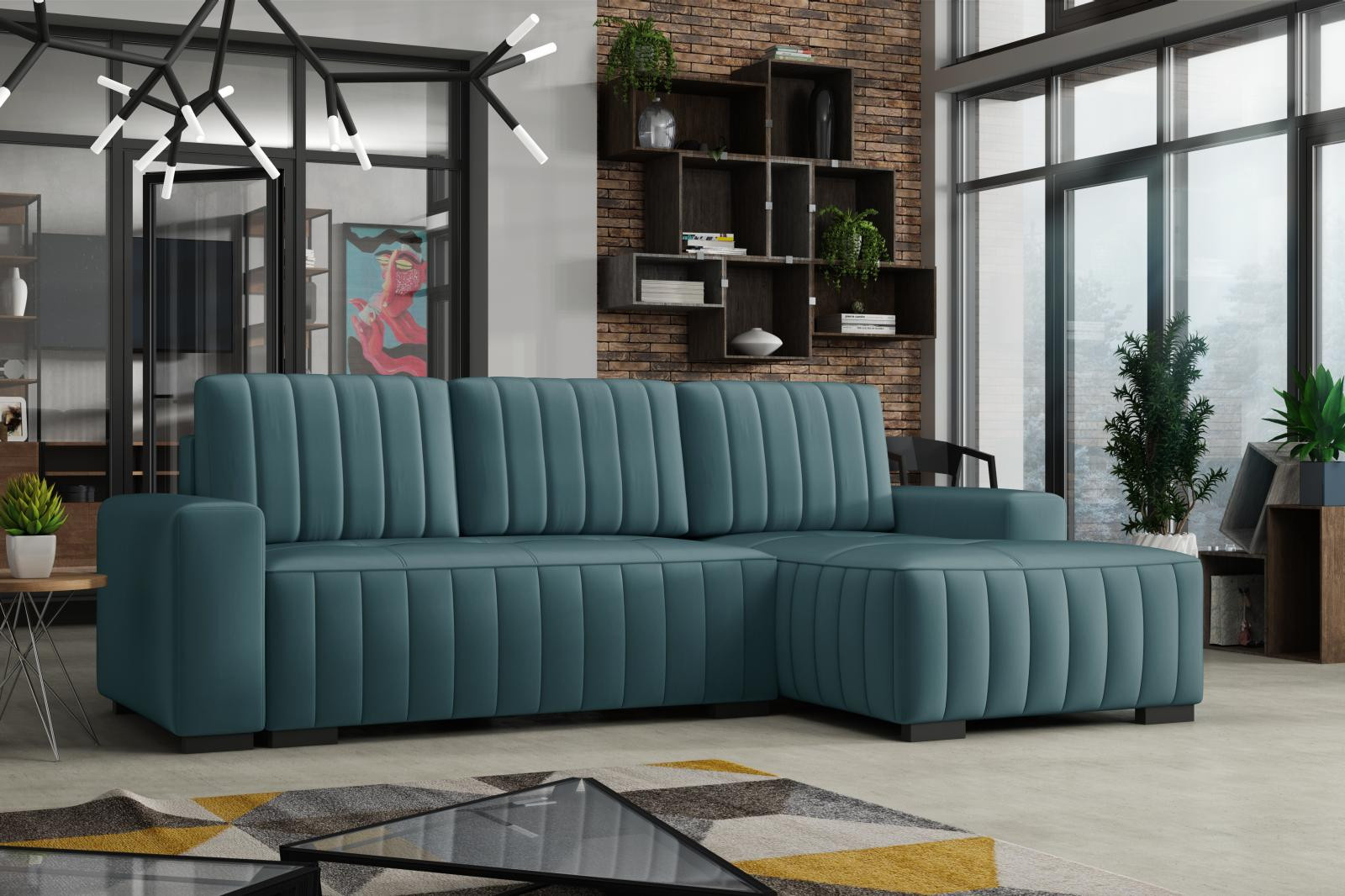 Rohová sedací souprava Hakim P - manila38/tyrkysová