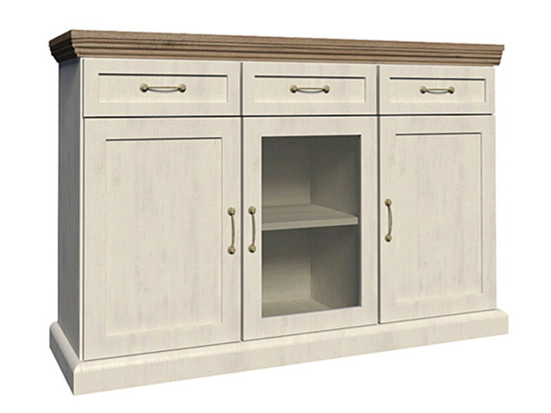 Nábytek ROYAL je vytvořen v anglickém stylu. Sestava nábytku ROYAL vnese do Vašeho domova styl a elegenci. Nábytkem ROYAL si můžete zařídit celý svůj domov - jídelnu, ložnici, obývací pokoj, kuchyň nebo předsíň. Nábytek je vyroben z velmi kvalitní LTD desky v kombinaci s MDF v barevném provedení Borovice nordická (korpus a přední plochy nábytku) s Dubem divokým (horní plochy nábytku). Uchyty jsou kovové.