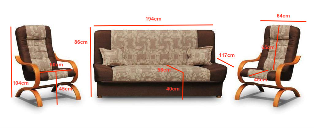 Elegantní sedací souprava Jola je vyrobena v klasickém provedení 3F+1+1. Křesla mají lehkou konstrukci z ohýbaného dřeva, díky tomu nezaberou moc místa a lehce se s nimi manipuluje. Třísed je rozkládací. Jednoduchým rozložením pomocí systému "klik klak" získáte lůžko k občasnému přespání Vaší návštěvy. Součástí je i úložný prostor na lůžkoviny. Křesla jsou dodávána v demontu. Zobrazení barev na fotograii se může od skutečnosti lišit. Vyobrazené dopňky a dekorace nejsou v ceně.
