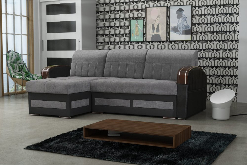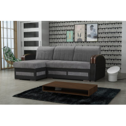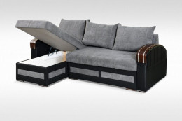 Designová sedací souprava v krásné kombinaci šedých látek a dřeva v barvě ořechu. Sedačka je vyrobena z pružin v kombinaci s kvalitní PUR pěnou. Sedačka je rozkládací s praktickým úložným prostorem. Je univerzální - tzn.při montáži se rozhodnete pro pravou nebo levou variantu. Dřevěné prvky jí dodávají na jedinečnosti a bude se vyjímat v každém interiéru. Zboží je dodáváno v demontu na paletě.