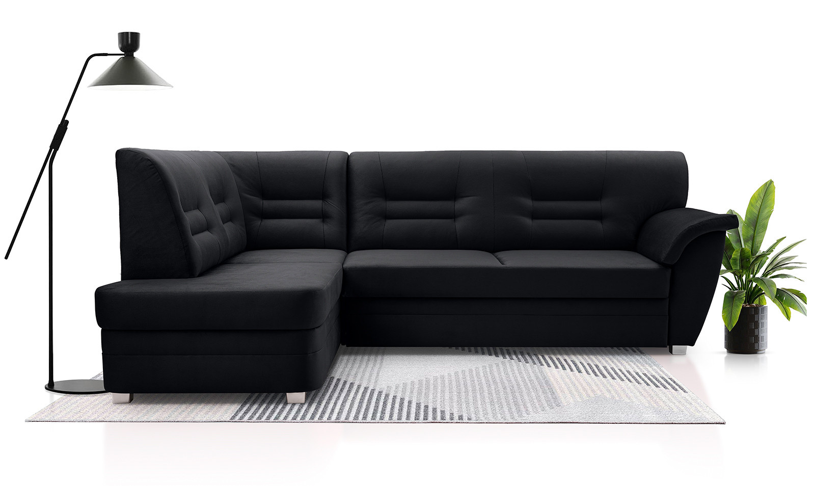 Moderní, rohová sedací souprava Dornia je rozkládací. Jednoduchým rozkladem vzniká lůžko vhodné k příležitostnému spaní. Má uložný prostor, který lze využít například na lůžkoviny. Sedací souprava je pružinová v kombinaci s kvalitní PUR pěnou. Je celočalouněná a je možno ji umístit také do prostoru. Na úvodním obrázku je sedací souprava vyobrazena v pravém provedení. Správná barva je zobrazena na první fotografii. Ostaní fotografie jsou pouze ilustrační. Zobrazení barev na fotografii se může od skutečnosti lišit. Vyobrazené doplňky a dekorace nejsou v ceně.