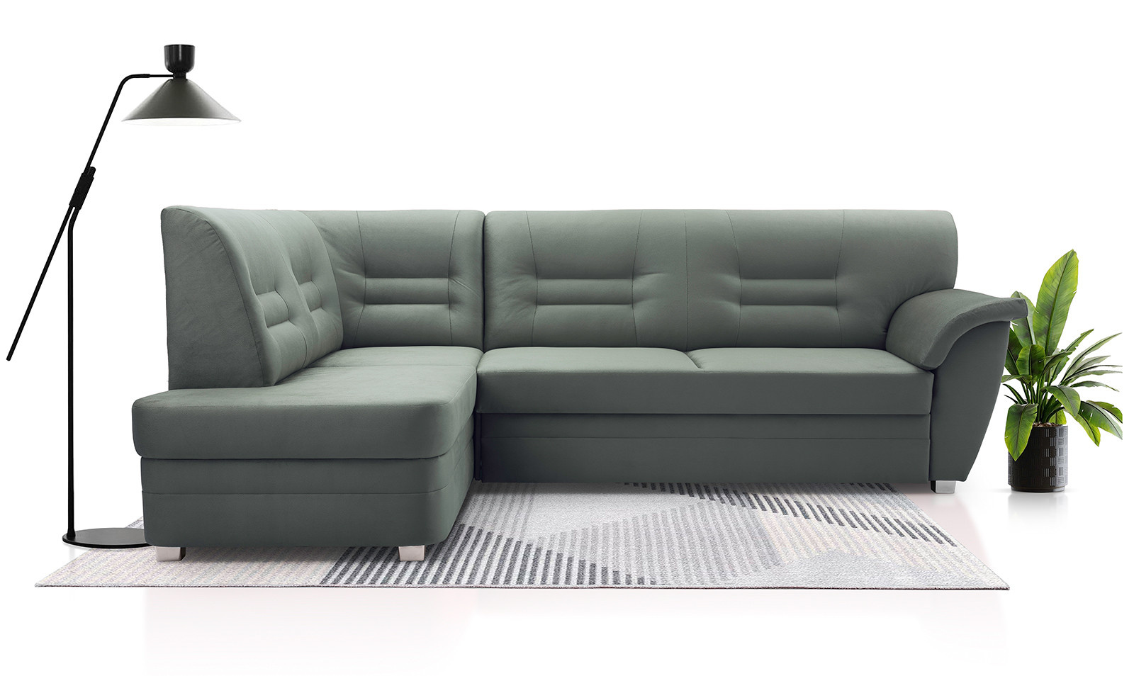 Moderní, rohová sedací souprava Dornia je rozkládací. Jednoduchým rozkladem vzniká lůžko vhodné k příležitostnému spaní. Má uložný prostor, který lze využít například na lůžkoviny. Sedací souprava je pružinová v kombinaci s kvalitní PUR pěnou. Je celočalouněná a je možno ji umístit také do prostoru. Na úvodním obrázku je sedací souprava vyobrazena v pravém provedení. Správná barva je zobrazena na první fotografii. Ostaní fotografie jsou pouze ilustrační. Zobrazení barev na fotografii se může od skutečnosti lišit. Vyobrazené doplňky a dekorace nejsou v ceně.