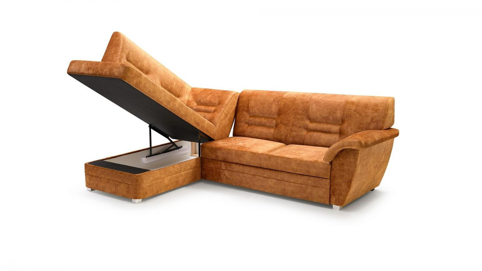 Moderní, rohová sedací souprava Dornia je rozkládací. Jednoduchým rozkladem vzniká lůžko vhodné k příležitostnému spaní. Má uložný prostor, který lze využít například na lůžkoviny. Sedací souprava je pružinová v kombinaci s kvalitní PUR pěnou. Je celočalouněná a je možno ji umístit také do prostoru. Na úvodním obrázku je sedací souprava vyobrazena v pravém provedení. Správná barva je zobrazena na první fotografii. Ostaní fotografie jsou pouze ilustrační. Zobrazení barev na fotografii se může od skutečnosti lišit. Vyobrazené doplňky a dekorace nejsou v ceně.