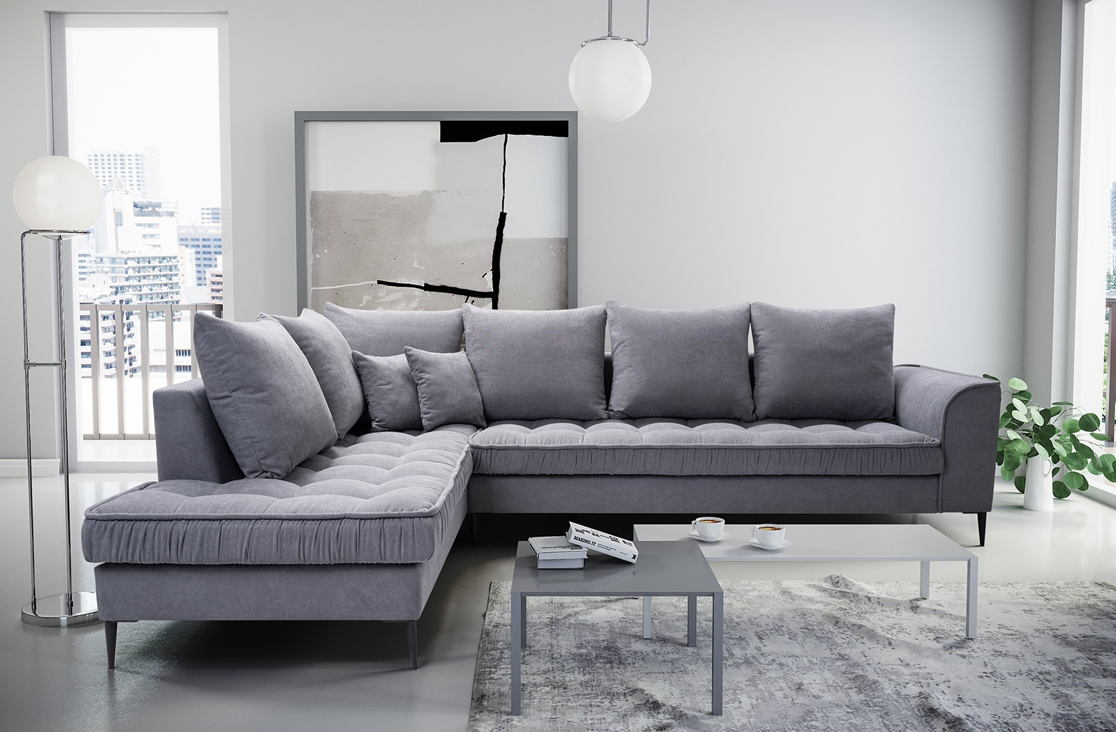 Rohová sedací souprava L Lidie - světle šedá