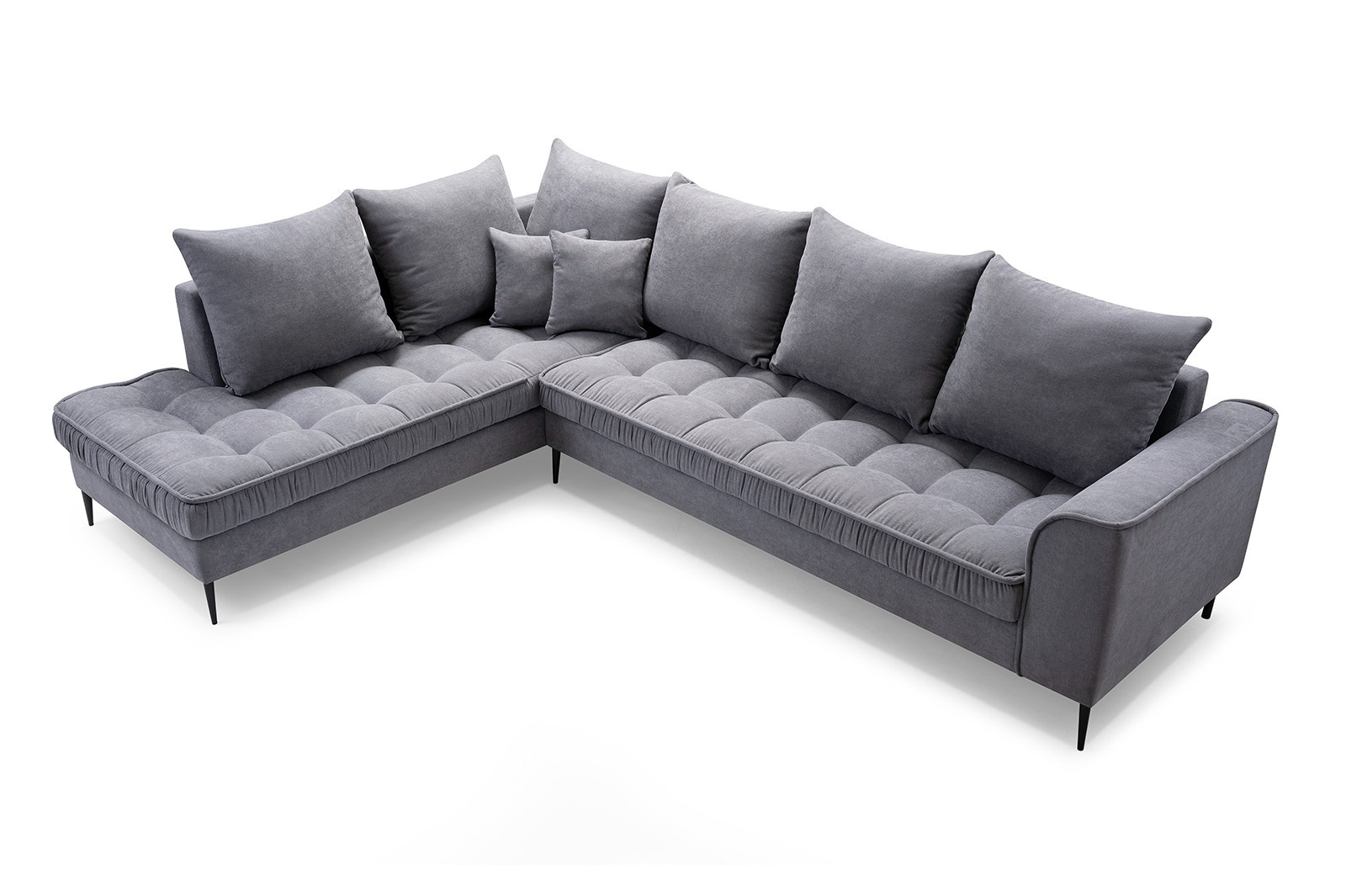 Polštáře jsou velmi pohodlnou součástí sedacích souprav. Jejich velké množství symbolizuje dokonalý relax. Sedací souprava Lidie je tedy pro ty, kteří si rádi užijí relax nejen po náročném dni, skvělou volbou. Její vzhled zaujme každou návštěvu. Prošívání sedáku a kovové nožky sedací soupravě přidává na eleganci. Všechny polštáře jsou volně ložené a můžete je přizpůsobit svému pohodlí. Výplň sedáku tvoří pružiny typu faliste v kombinaci s pěnou T30 a HR 35/45. Sedací souprava je celočalouněná, takže ji můžete umístit do prostoru. Sedací souprava není rozkládací, ale po sejmutí polštářů, vznikne dostatečně velký prostor k občasnému přespání. Cena je uvedena za sedací soupravu včetně polštářů. Vyobrazené dekorace nejsou v ceně. Sedací soupravu nabízíme v levém, nebo pravém provedení. Vlivem nastavení monitorů, nebo displejů telefonů, se zobrazení barev na fotografii může od skutečnosti lišit.