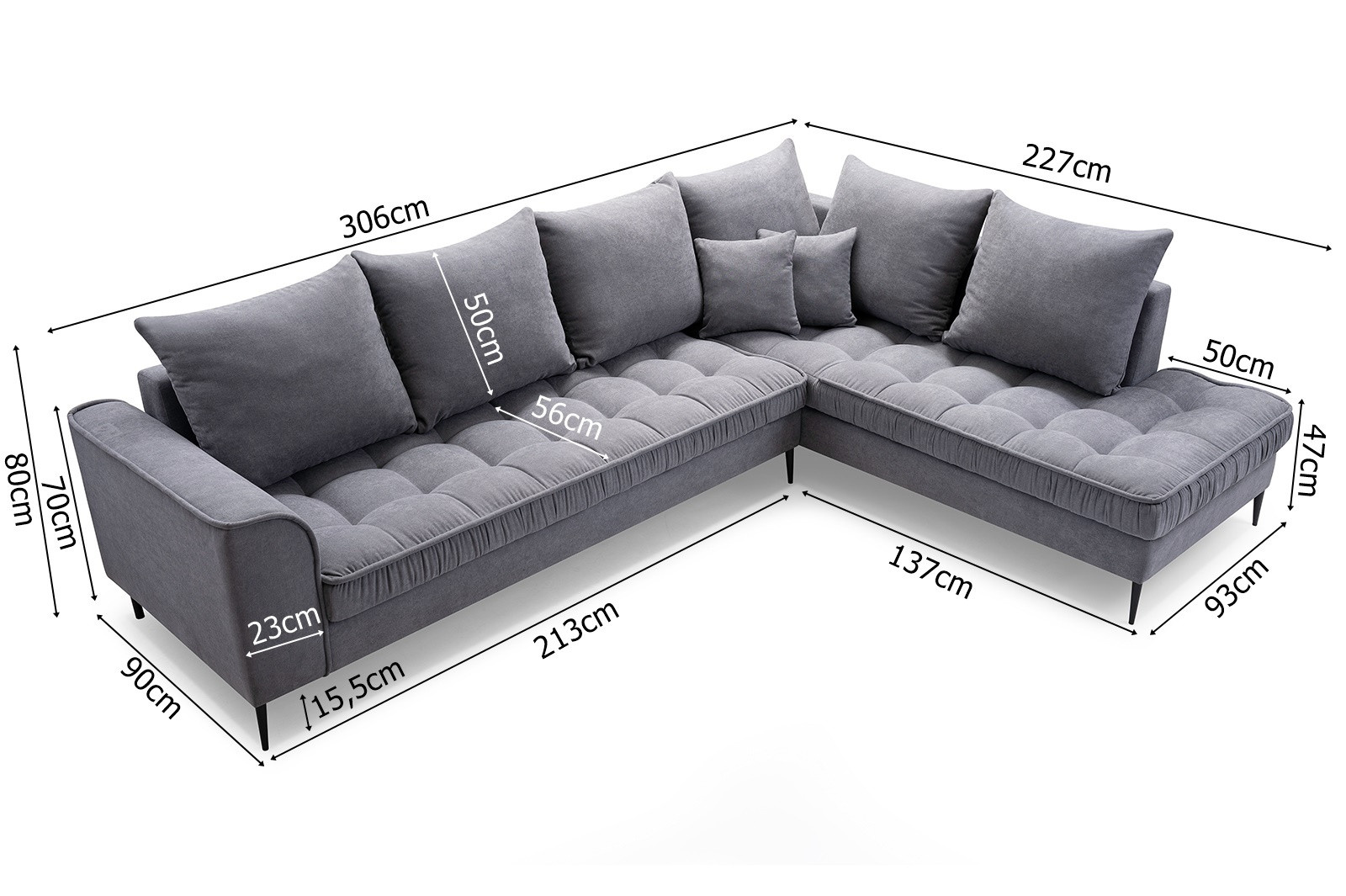 | Hloubka sedu s polštáři | 90 cm |