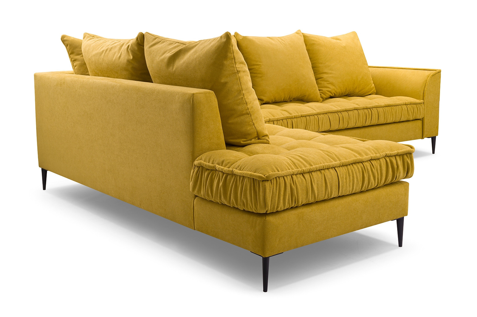 Polštáře jsou velmi pohodlnou součástí sedacích souprav. Jejich velké množství symbolizuje dokonalý relax. Sedací souprava Lidie je tedy pro ty, kteří si rádi užijí relax nejen po náročném dni, skvělou volbou. Její vzhled zaujme každou návštěvu. Prošívání sedáku a kovové nožky sedací soupravě přidává na eleganci. Všechny polštáře jsou volně ložené a můžete je přizpůsobit svému pohodlí. Výplň sedáku tvoří pružiny typu faliste v kombinaci s pěnou T30 a HR 35/45. Sedací souprava je celočalouněná, takže ji můžete umístit do prostoru. Sedací souprava není rozkládací, ale po sejmutí polštářů, vznikne dostatečně velký prostor k občasnému přespání. Cena je uvedena za sedací soupravu včetně polštářů. Vyobrazené dekorace nejsou v ceně. Sedací soupravu nabízíme v levém, nebo pravém provedení. Vlivem nastavení monitorů, nebo displejů telefonů, se zobrazení barev na fotografii může od skutečnosti lišit.