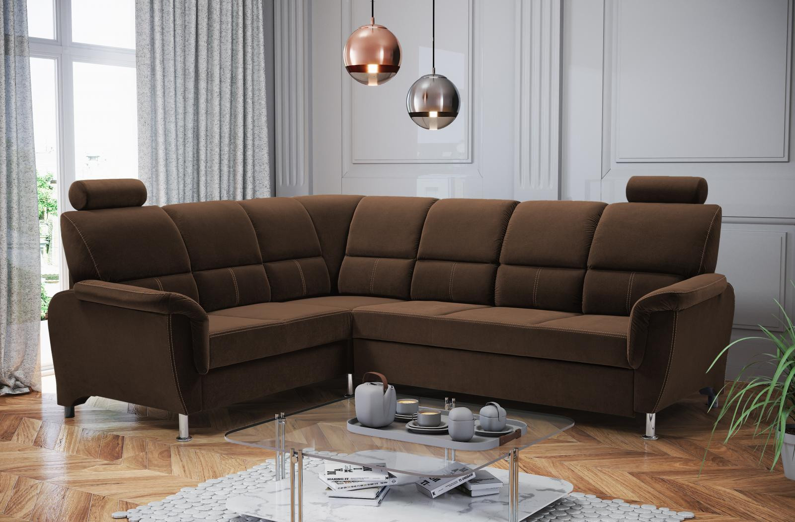 Rohová sedací souprava L Nadia Velva 4 - hnědá