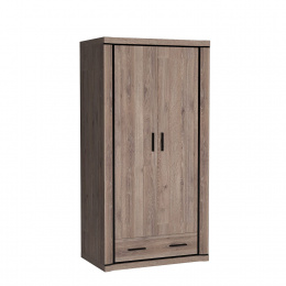 Jednoduchá, velká dvoudveřová šatní skříň z kolekce Dallas. Má krásné černé lemování, které dokonale ladí s černými úchytkami. Tato šatní skříň, stejně jako další modely z kolekce, se bude skvěle hodit do módního industriálního stylu. Skříň nám umožňuje ukládat oblečení na ramínka díky tyči o délce 88,1 cm. Díky zásuvce můžete roztřídit spoustu věcí a oblečení. K dostání ve dvou barevných provedeních.