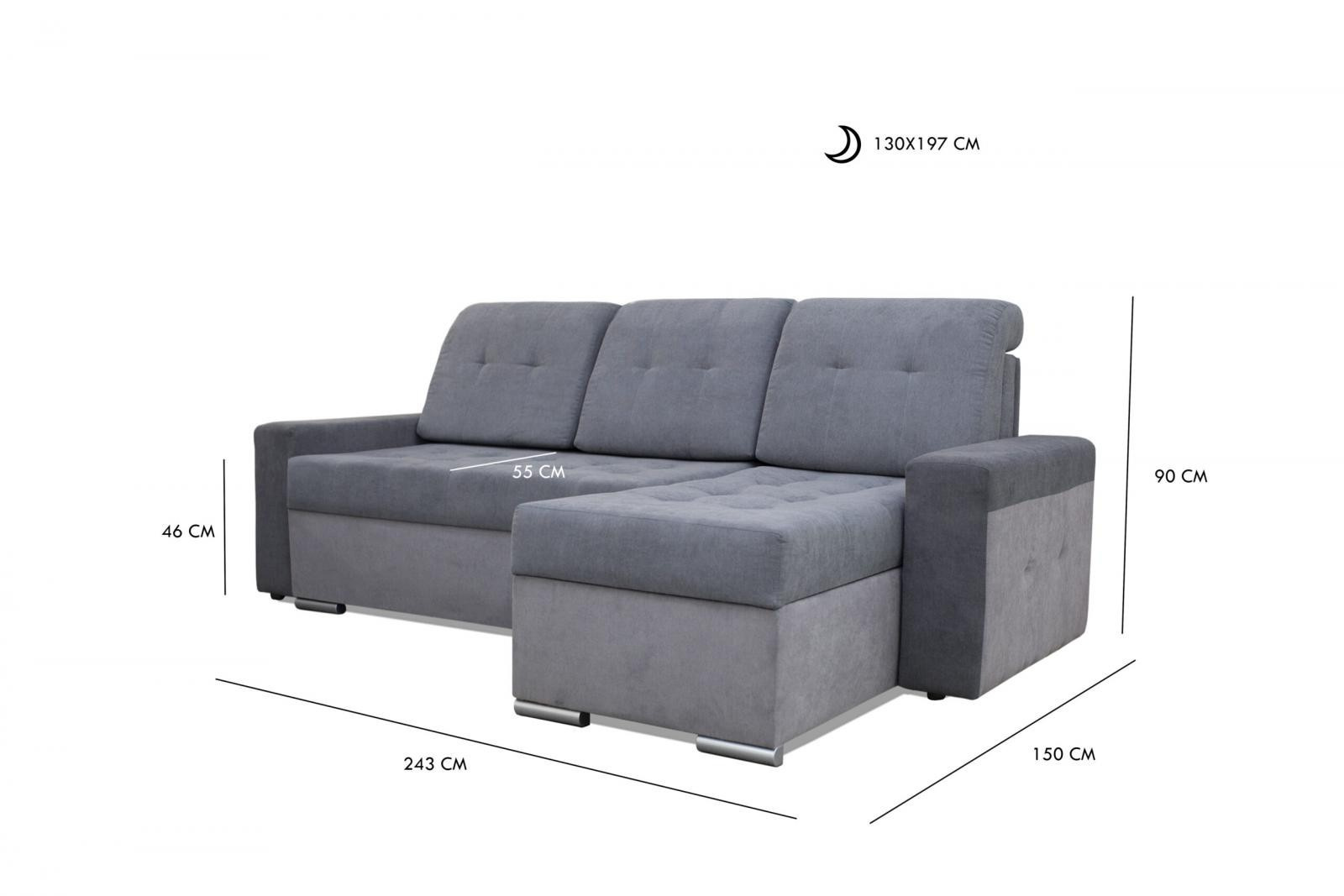 Laisa je moderní rohová sedací souprava s nadčasovým designem a zvýšeným sedem 46 cm. Její předností je pohodlí, praktičnost a univerzální použití. Můžete si ji podle potřeby sestavit jako levou nebo pravou, což je výhoda při zařizování obývacího pokoje. Nemusíte přemýšlet do jakého rohu postavíte sedací soupravu, jednoduše ji podle potřeby přizpůsobíte. Pohodlí při sezení zajišťuje kombinace pružin faliste s kvalitní PUR pěnou a velké opěrné polštáře, které jsou odnímatelné, takže si je můžete přizpůsobit svým potřebám. Praktickou stránkou sedací soupravy je úložný prostor a možnost rozložení k občasnému přespání Vaší návštěvy. Sedací souprava je potažena kvalitní látkou Soro a v nabídce najdete více barevných variant. Jedná se o tkaninu podobnou plyši s krátkým vlasem, která se vyznačuje sametově jemným povrchem. Látka Soro vyrobená ze 100% polyesteru s viditelným pleteným vzorem je měkká, prodyšná, snadno absorbuje vlhkost a rychle schne. Odolává také dennímu světlu a netvoří žmolky. Správná barva sedací soupravy je vyobrazena v úvodních fotografiích. Ostatní fotografie jsou ilustrační.