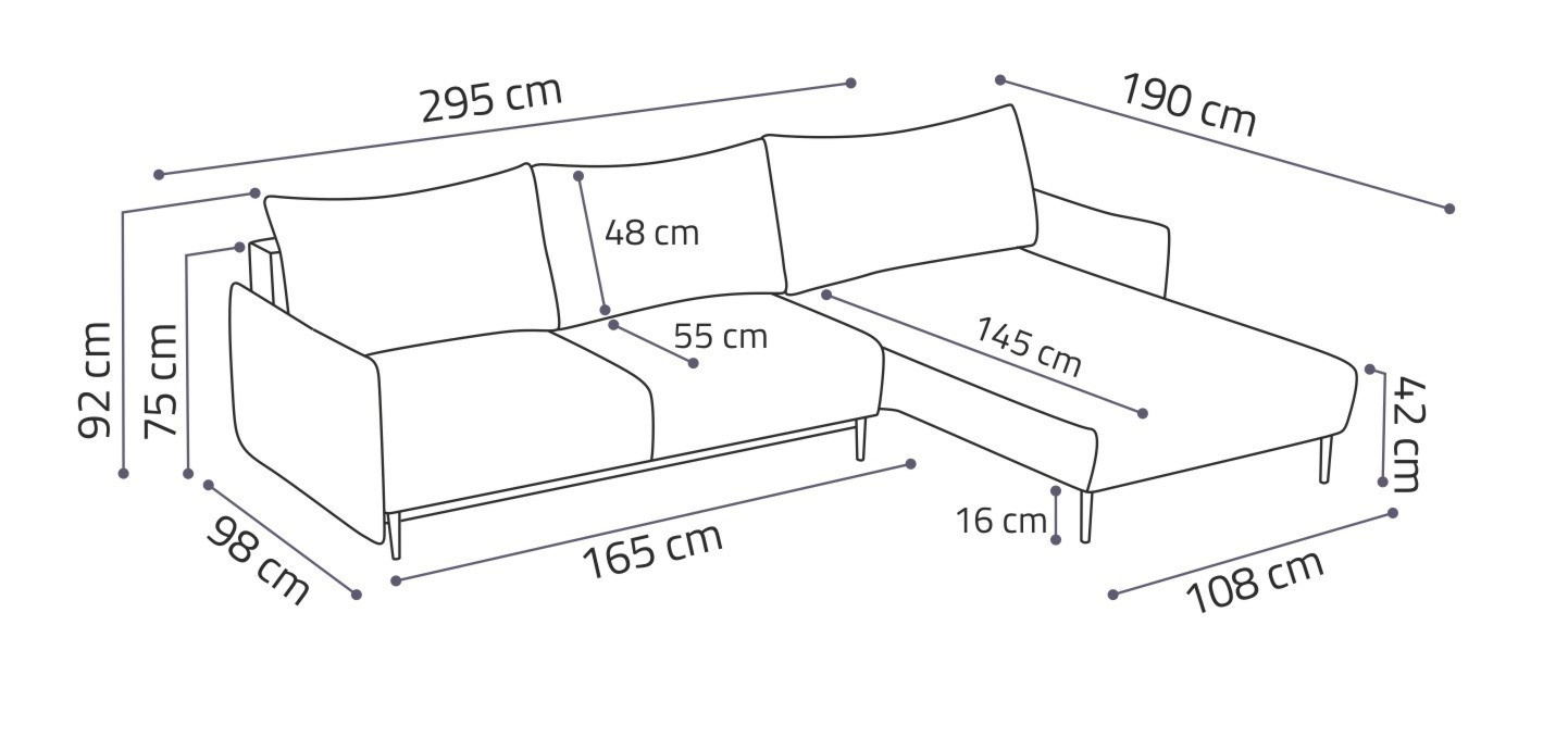 Sedací souprava Lamia je vyrobena v jednoduchém elegantním designu, který se hodí do všech interiérů. Její velkou předností je univerzální možnost sestavení. Tzn. že podle potřeby můžete mít levou nebo pravou stranu, což je výhoda při zařizování obývacího pokoje. Nemusíte přemýšlet do jakého rohu sedací soupravu postavíte a jednoduše si ji podle potřeby přizpůsobíte. Sedací souprava je rozkládací. Jednoduchým rozložením vytvoříte dostatečně velké lůžko k příležitostnému přespání Vaší návštěvy. Samozřejmostí je i praktický úložný prostor, který můžete využít např. na lůžkoviny. Sedací souprava je potažena kvalitní látkou Anthology, která je extrémně měkká a příjemná na dotek se specifickou bouclé texturou. Výplň sedáků tvoří kombinace vlnitých pružin s kvalitní HR pěnou. Pro pohodlí při sezení a odpočinku, je sedací souprava vybavena 3 objemnými polštáři. Správná barva potahové látky je zobrazena na první a druhé fotografii. Ostatní fotografie jsou pouze ilustrační.