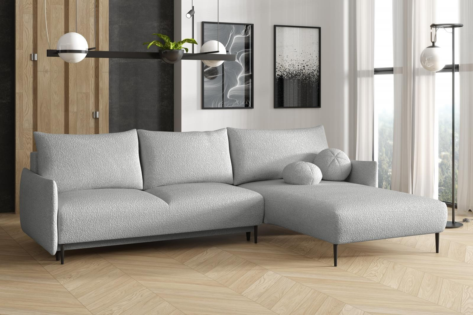 Sedací souprava Lamia je vyrobena v jednoduchém elegantním designu, který se hodí do všech interiérů. Její velkou předností je univerzální možnost sestavení. Tzn. že podle potřeby můžete mít levou nebo pravou stranu, což je výhoda při zařizování obývacího pokoje. Nemusíte přemýšlet do jakého rohu sedací soupravu postavíte a jednoduše si ji podle potřeby přizpůsobíte. Sedací souprava je rozkládací. Jednoduchým rozložením vytvoříte dostatečně velké lůžko k příležitostnému přespání Vaší návštěvy. Samozřejmostí je i praktický úložný prostor, který můžete využít např. na lůžkoviny. Sedací souprava je potažena kvalitní látkou Anthology, která je extrémně měkká a příjemná na dotek se specifickou bouclé texturou. Výplň sedáků tvoří kombinace vlnitých pružin s kvalitní HR pěnou. Pro pohodlí při sezení a odpočinku, je sedací souprava vybavena 3 objemnými polštáři. Správná barva potahové látky je zobrazena na první a druhé fotografii. Ostatní fotografie jsou pouze ilustrační.