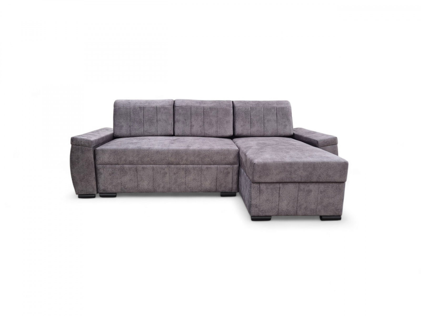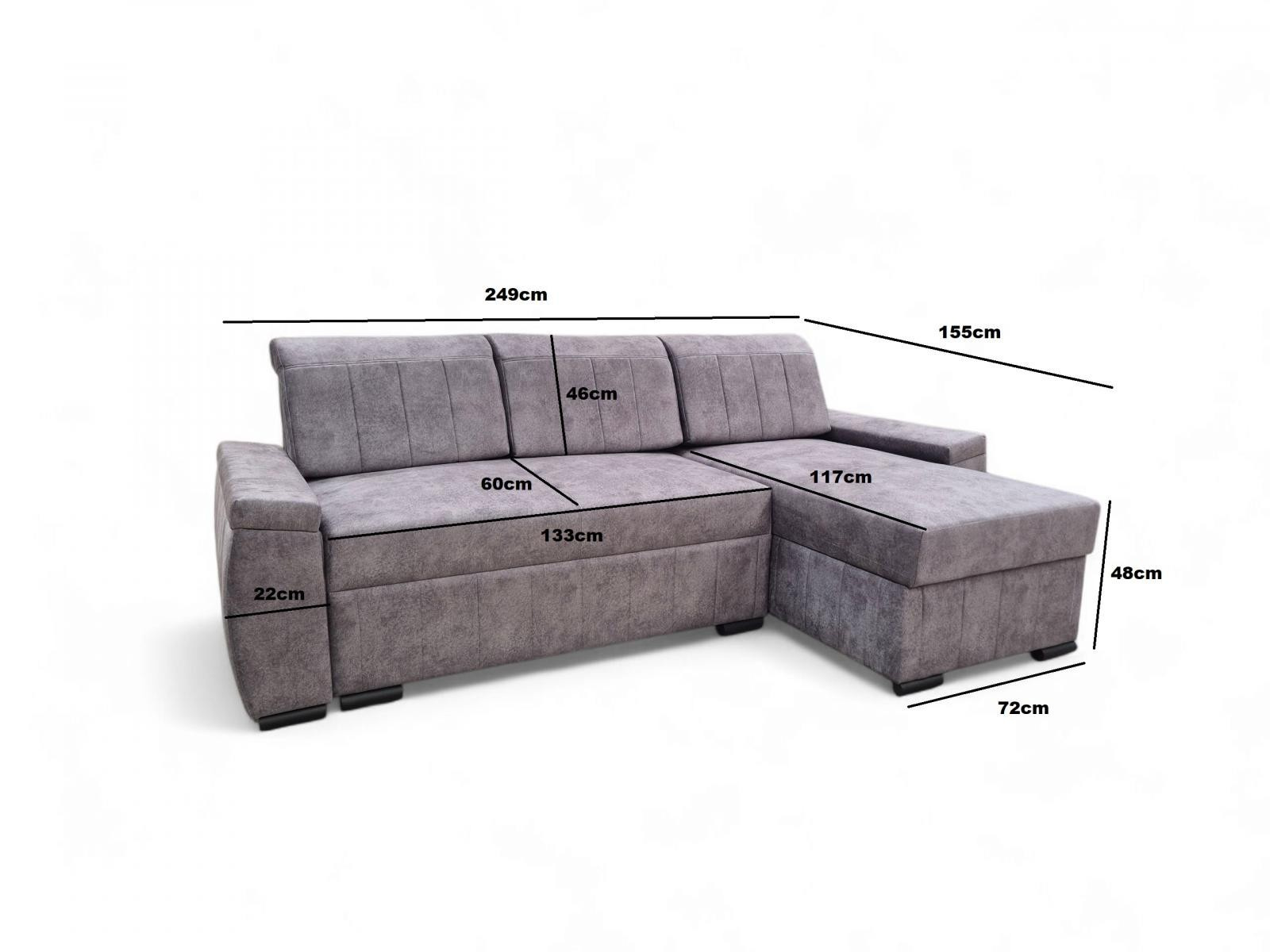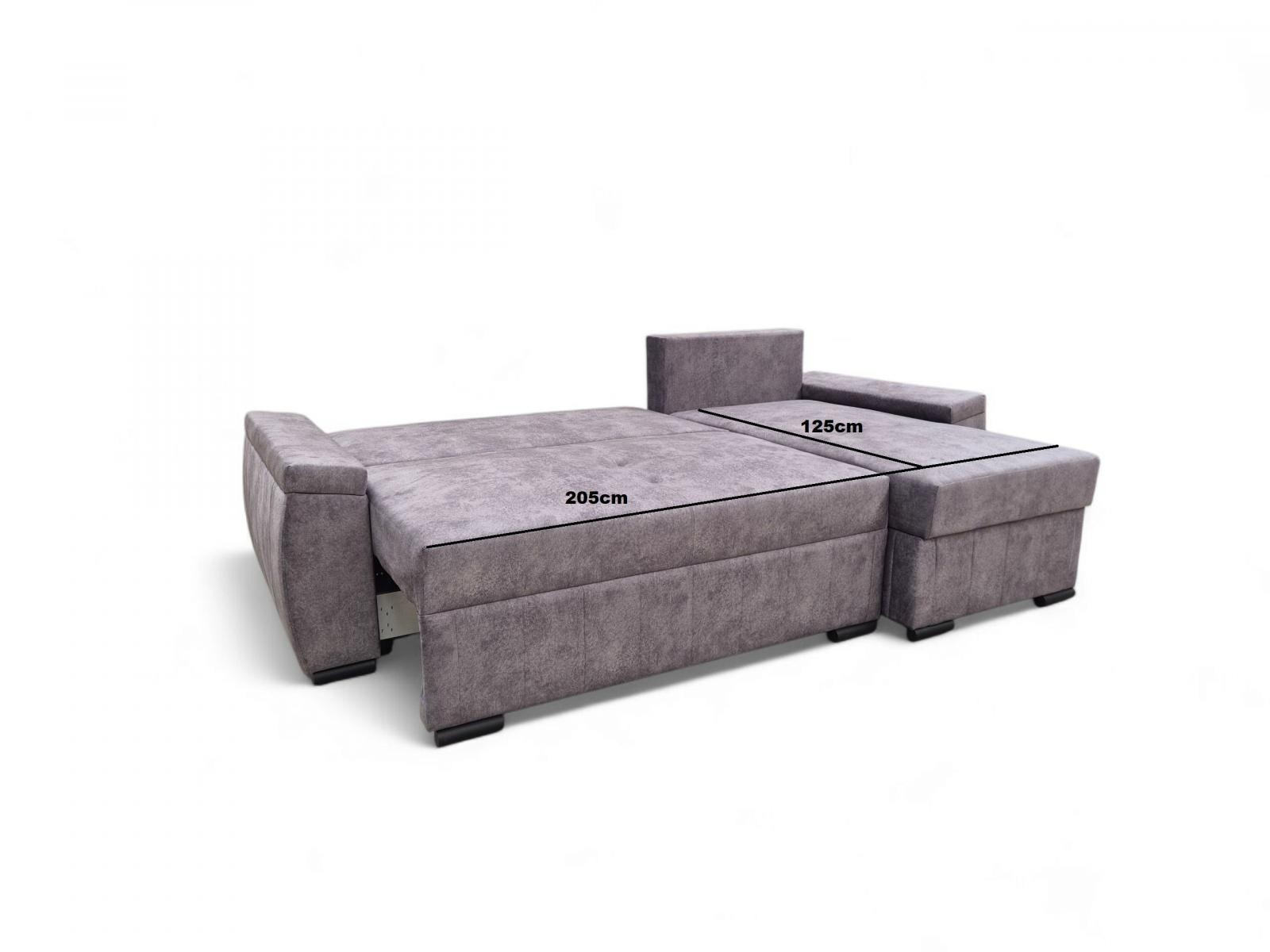Sedací souprava je krásným elegantním kouskem s nádechem retro designu a výborně zapadne do každého interiéru. Její velkou předností je univerzální možnost sestavení. Tzn. že podle potřeby můžete mít levou nebo pravou stranu, což je výhoda při zařizování obývacího pokoje. Nemusíte přemýšlet do jakého rohu sedací soupravu postavíte a jednoduše si ji podle potřeby přizpůsobíte. Výhodou je také vysoký komfortní posed 48 cm a plocha po rozložení 205 x 125 cm, samozřejmostí je i nepostradatelný úložný prostor. Jednoduchým rozložením pomocí automatu vznikne dostatečně prostorné lůžko k občasnému přespání Vaší návštěvy. Výplň sedáku tvoří vlnité pružiny v kombinaci s pružinami bonell a kvalitní PUR pěnou. Sedací souprava je celočalouněná, takže ji můžete umístit i do prostoru. Výborně se hodí do obývacího pokoje, do pracovny či pokoje pro hosty. Sedací souprava bude dodána v potahové látce Salvador 15 - vzorek je vyobrazen na poslední doplňkové fotografii.