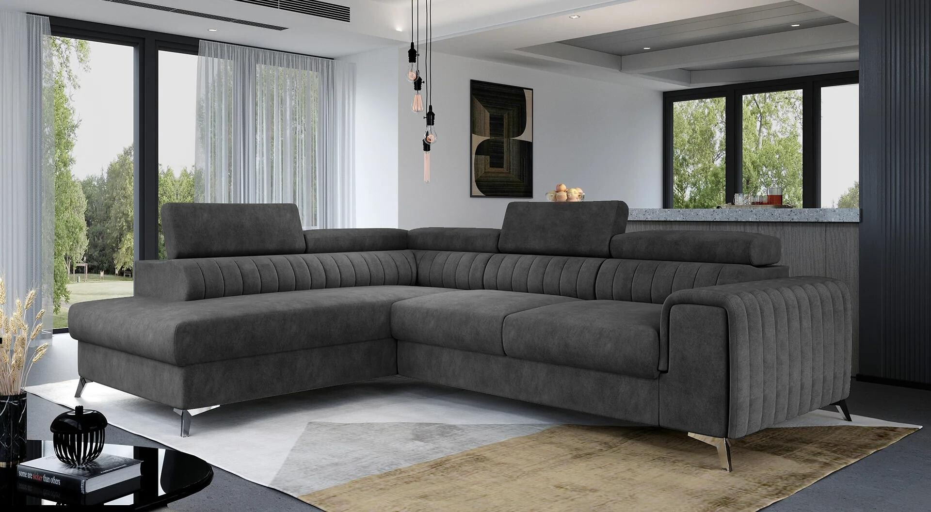 Laurence je stylová, funkční a především elegantní rohová pohovka pro náročné znalce pohodlí. Vysoký komfort odpočinku je zvýšen nastavitelnými vysokými opěrkami hlavy a širokým sedadlem. Nábytek o rozměrech 278 x 205 x 92 cm je vyroben z vlnité pružiny typu B, pěny T30 a HR, což zajistí nejvyšší komfort při každodenním používání pohovky během dne, stejně jako postele po setmění, protože díky funkci typu delfín je rohová sedačka Laurence vhodná i pro noční odpočinek. Rohová pohovka ve tvaru L je vybavena funkcí spaní o rozměrech 123 x 193 cm. Kromě toho má také prostorný úložný prostor na lůžkoviny. S elegantním prošíváním a 9 cm ocelovými nohami je rohová pohovka udržována v moderním stylu dokončení. Produkt je dostupný ve všech látkách z kolekce Eltap. Pokud hledáte závan čerstvého vzduchu a modernistický nádech - Laurence bude pro vás jistě perfektní.