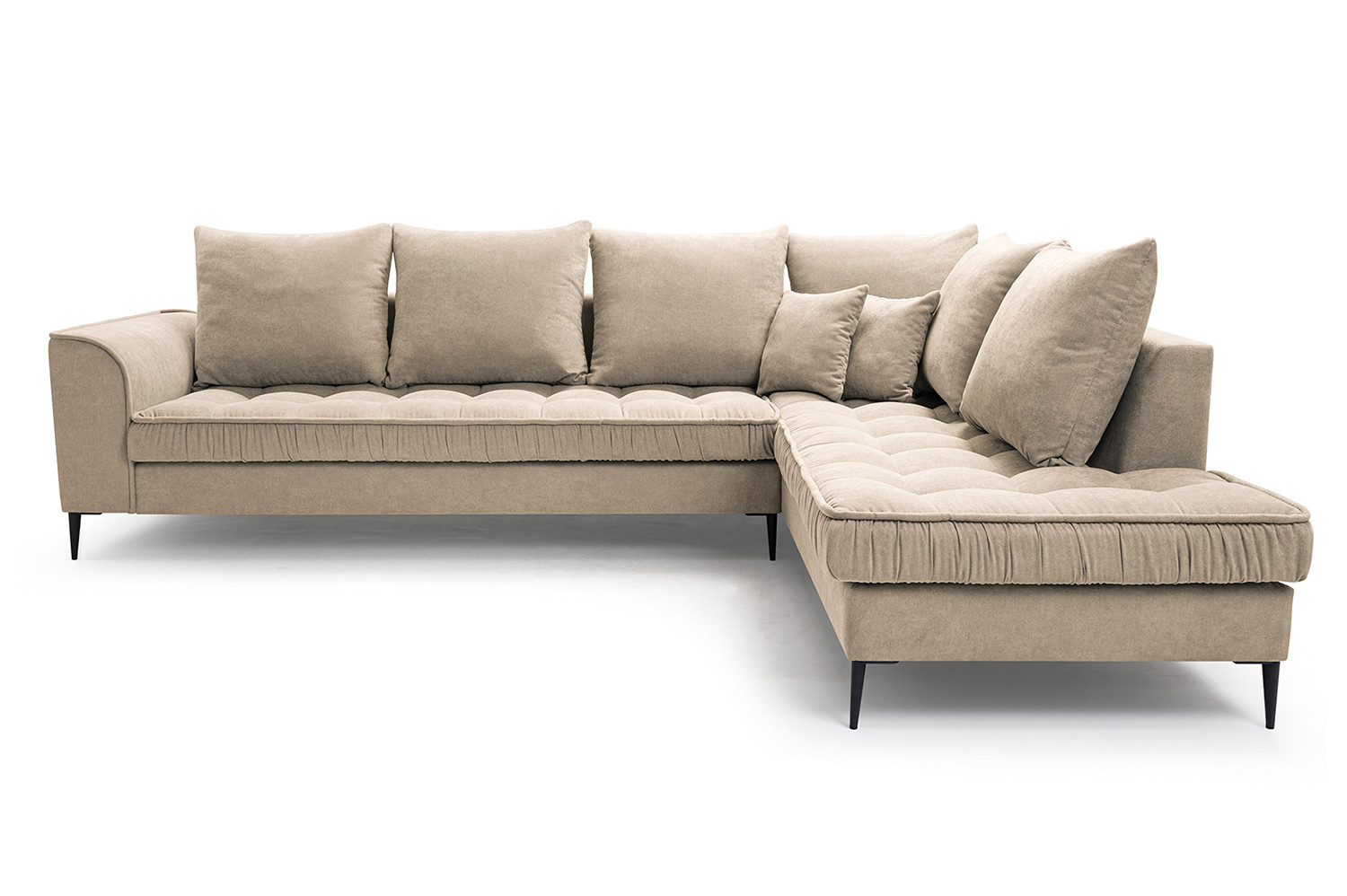 Polštáře jsou velmi pohodlnou součástí sedacích souprav. Jejich velké množství symbolizuje dokonalý relax. Sedací souprava Lidie je tedy pro ty, kteří si rádi užijí relax nejen po náročném dni, skvělou volbou. Její vzhled zaujme každou návštěvu. Prošívání sedáku a kovové nožky sedací soupravě přidává na eleganci. Všechny polštáře jsou volně ložené a můžete je přizpůsobit svému pohodlí. Výplň sedáku tvoří pružiny typu faliste v kombinaci s pěnou T30 a HR 35/45. Sedací souprava je celočalouněná, takže ji můžete umístit do prostoru. Sedací souprava není rozkládací, ale po sejmutí polštářů, vznikne dostatečně velký prostor k občasnému přespání. Cena je uvedena za sedací soupravu včetně polštářů. Vyobrazené dekorace nejsou v ceně. Sedací soupravu nabízíme v levém, nebo pravém provedení. Vlivem nastavení monitorů, nebo displejů telefonů, se zobrazení barev na fotografii může od skutečnosti lišit.
