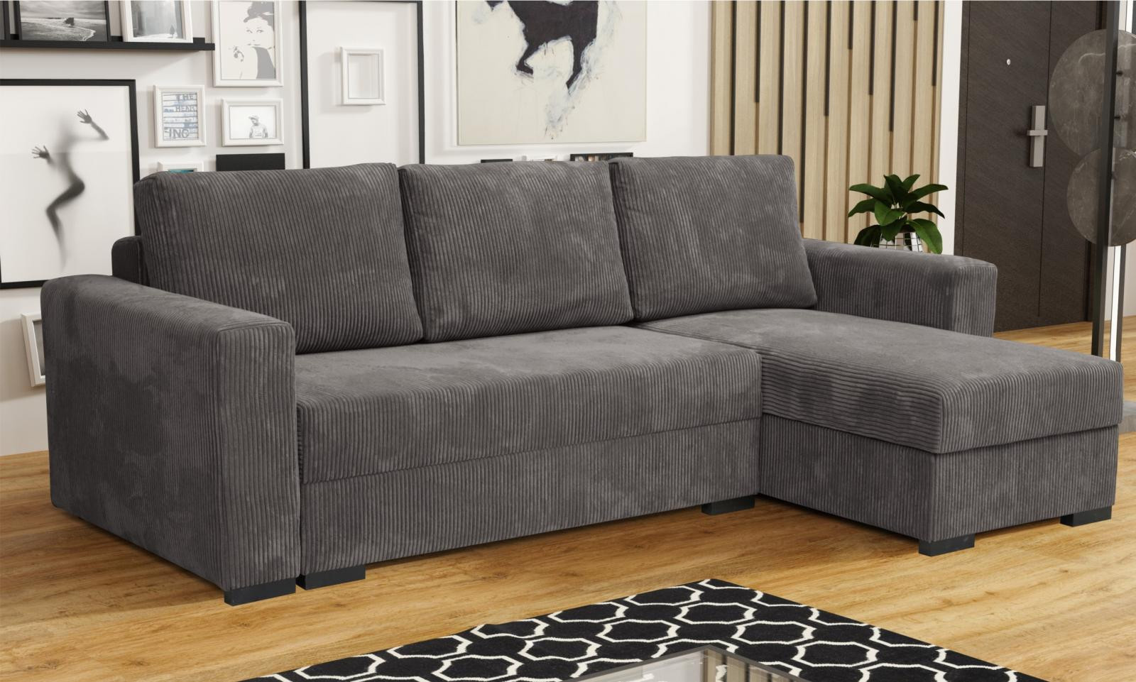 Loreta Premium je moderní rohová sedací souprava s nadčasovým designem. Její předností je pohodlí, praktičnost a univerzální použití. Můžete si ji podle potřeby sestavit jako levou nebo pravou, což je výhoda při zařizování obývacího pokoje. Nemusíte přemýšlet do jakého rohu postavíte sedací soupravu, jednoduše ji podle potřeby přizpůsobíte. Pohodlí při sezení zajišťuje kombinace pružin faliste s kvalitní PUR pěnou a velké opěrné polštáře, které jsou odnímatelné, takže si je můžete přizpůsobit svým potřebám. Praktickou stránkou sedací soupravy je úložný prostor a možnost rozložení k občasnému přespání Vaší návštěvy. Sedací souprava je potažena jednobarevnou látkou Poso, která se vyznačuje sametově jemným povrchem a svým typickým vzhledem připomíná manšestr. V nabídce najdete více barevných variant. V ceně sedací soupravy jsou 3 velké opěrné polštáře. Ostatní vyobrazené dekorace nejsou v ceně. Správná barva potahové látky je zobrazena na první fotografii. Ostatní fotografie jsou pouze ilustrační.