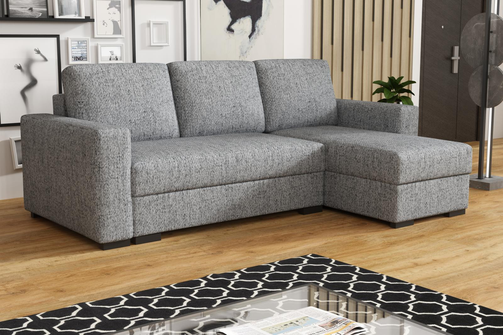 Loreta je moderní rohová sedací souprava s nadčasovým designem. Její předností je pohodlí, praktičnost a univerzální použití. Můžete si ji podle potřeby sestavit jako levou nebo pravou, což je výhoda při zařizování obývacího pokoje. Nemusíte přemýšlet do jakého rohu postavíte sedací soupravu, jednoduše ji podle potřeby přizpůsobíte. Pohodlí při sezení zajišťuje kombinace pružin faliste s kvalitní PUR pěnou a velké opěrné polštáře, které jsou odnímatelné, takže si je můžete přizpůsobit svým potřebám. Praktickou stránkou sedací soupravy je úložný prostor a možnost rozložení k občasnému přespání Vaší návštěvy. Sedací souprava je potažena látkou jednobarevnou a v nabídce najdete více barevných variant. V ceně sedací soupravy jsou 3 velké opěrné polštáře. Ostatní vyobrazené dekorace nejsou v ceně. Správná barva potahové látky je zobrazena na první fotografii. Ostatní fotografie jsou pouze ilustrační.