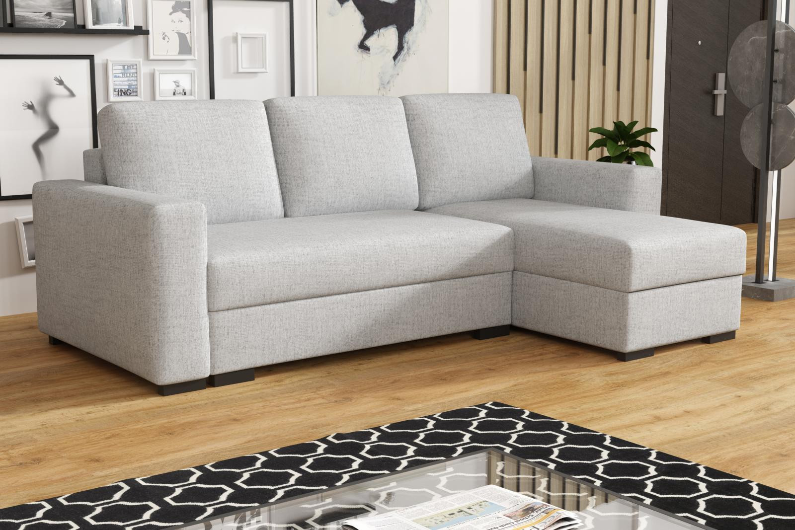 Loreta je moderní rohová sedací souprava s nadčasovým designem. Její předností je pohodlí, praktičnost a univerzální použití. Můžete si ji podle potřeby sestavit jako levou nebo pravou, což je výhoda při zařizování obývacího pokoje. Nemusíte přemýšlet do jakého rohu postavíte sedací soupravu, jednoduše ji podle potřeby přizpůsobíte. Pohodlí při sezení zajišťuje kombinace pružin faliste s kvalitní PUR pěnou a velké opěrné polštáře, které jsou odnímatelné, takže si je můžete přizpůsobit svým potřebám. Praktickou stránkou sedací soupravy je úložný prostor a možnost rozložení k občasnému přespání Vaší návštěvy. Sedací souprava je potažena látkou jednobarevnou a v nabídce najdete více barevných variant. V ceně sedací soupravy jsou 3 velké opěrné polštáře. Ostatní vyobrazené dekorace nejsou v ceně. Správná barva potahové látky je zobrazena na první fotografii. Ostatní fotografie jsou pouze ilustrační.
