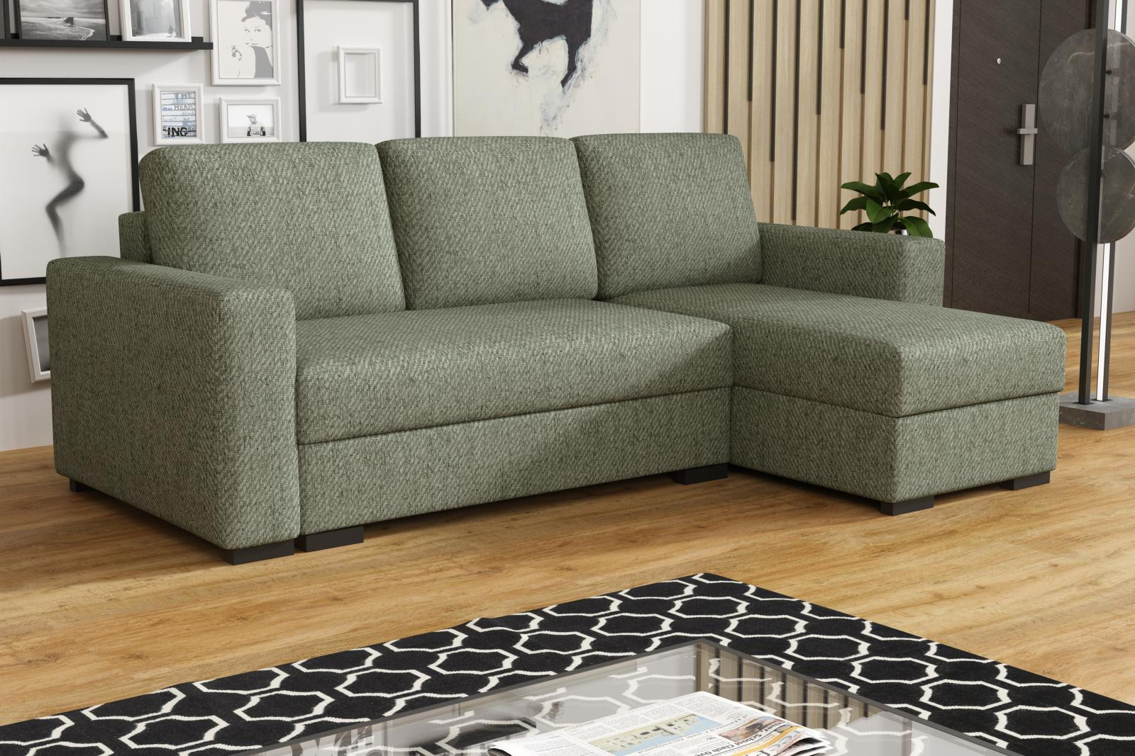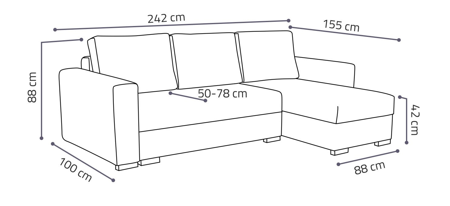 Loreta je moderní rohová sedací souprava s nadčasovým designem. Její předností je pohodlí, praktičnost a univerzální použití. Můžete si ji podle potřeby sestavit jako levou nebo pravou, což je výhoda při zařizování obývacího pokoje. Nemusíte přemýšlet do jakého rohu postavíte sedací soupravu, jednoduše ji podle potřeby přizpůsobíte. Pohodlí při sezení zajišťuje kombinace pružin faliste s kvalitní PUR pěnou a velké opěrné polštáře, které jsou odnímatelné, takže si je můžete přizpůsobit svým potřebám. Praktickou stránkou sedací soupravy je úložný prostor a možnost rozložení k občasnému přespání Vaší návštěvy. Sedací souprava je potažena látkou jednobarevnou a v nabídce najdete více barevných variant. V ceně sedací soupravy jsou 3 velké opěrné polštáře. Ostatní vyobrazené dekorace nejsou v ceně. Správná barva potahové látky je zobrazena na první fotografii. Ostatní fotografie jsou pouze ilustrační.