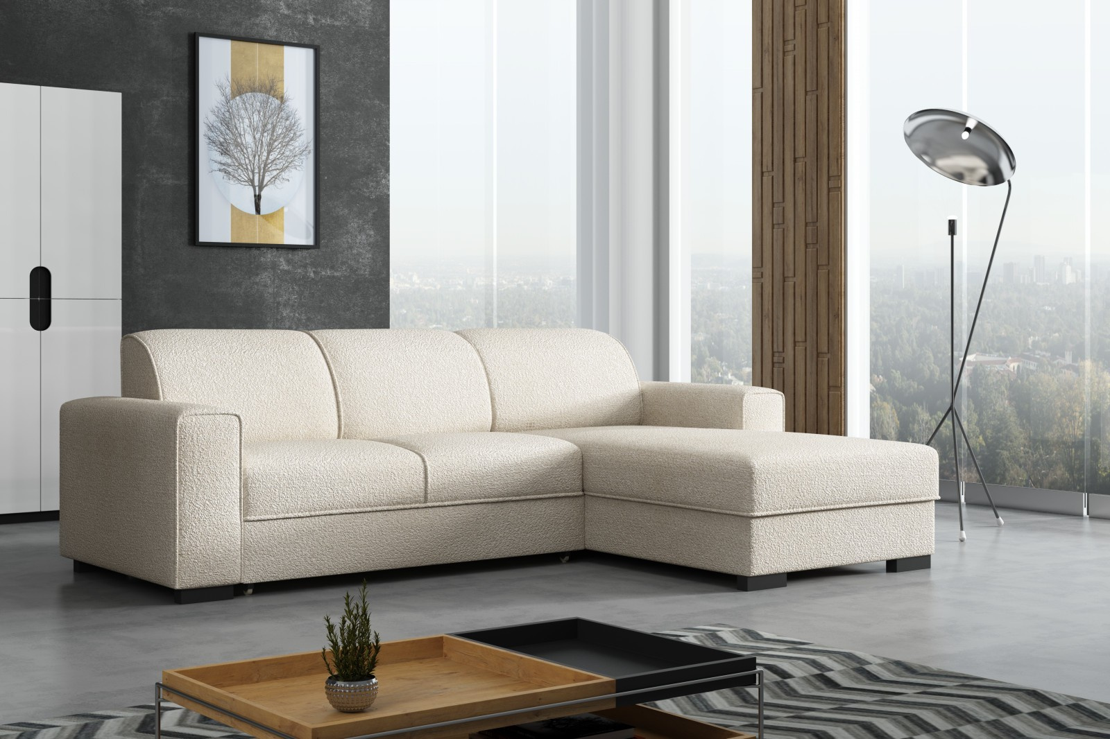 Pohodlná sedací souprava patří k nejdůležitějšímu vybavení každého obývacího pokoje. Sedací souprava Lubor je ideálním spojením pohodlí, praktičnosti a také moderního designu. Tato sedací souprava přímo vybízí k relaxaci např. u sledování televize. Výplň sedáků tvoří kombinace pružin faliste s kvalitní PUR pěnou. Jednoduchým rozkladem pomocí automatu, vznikne lůžko vhodné k příležitostnému spaní. Samozřejmostí je i úložný prostor, který můžete využít třeba na lůžkoviny. Sedací soupravu nabízíme v kvalitní potahové látce, a to v několika barevných provedeních, které také naleznete v naší nabídce. Vyobrazené doplňky a dekorace nejsou v ceně sedací soupravy.Fotografie sedací soupravy v rozkladu je pouze ilustrační. Správný barevný odstín je zobrazen na úvodní fotografii.