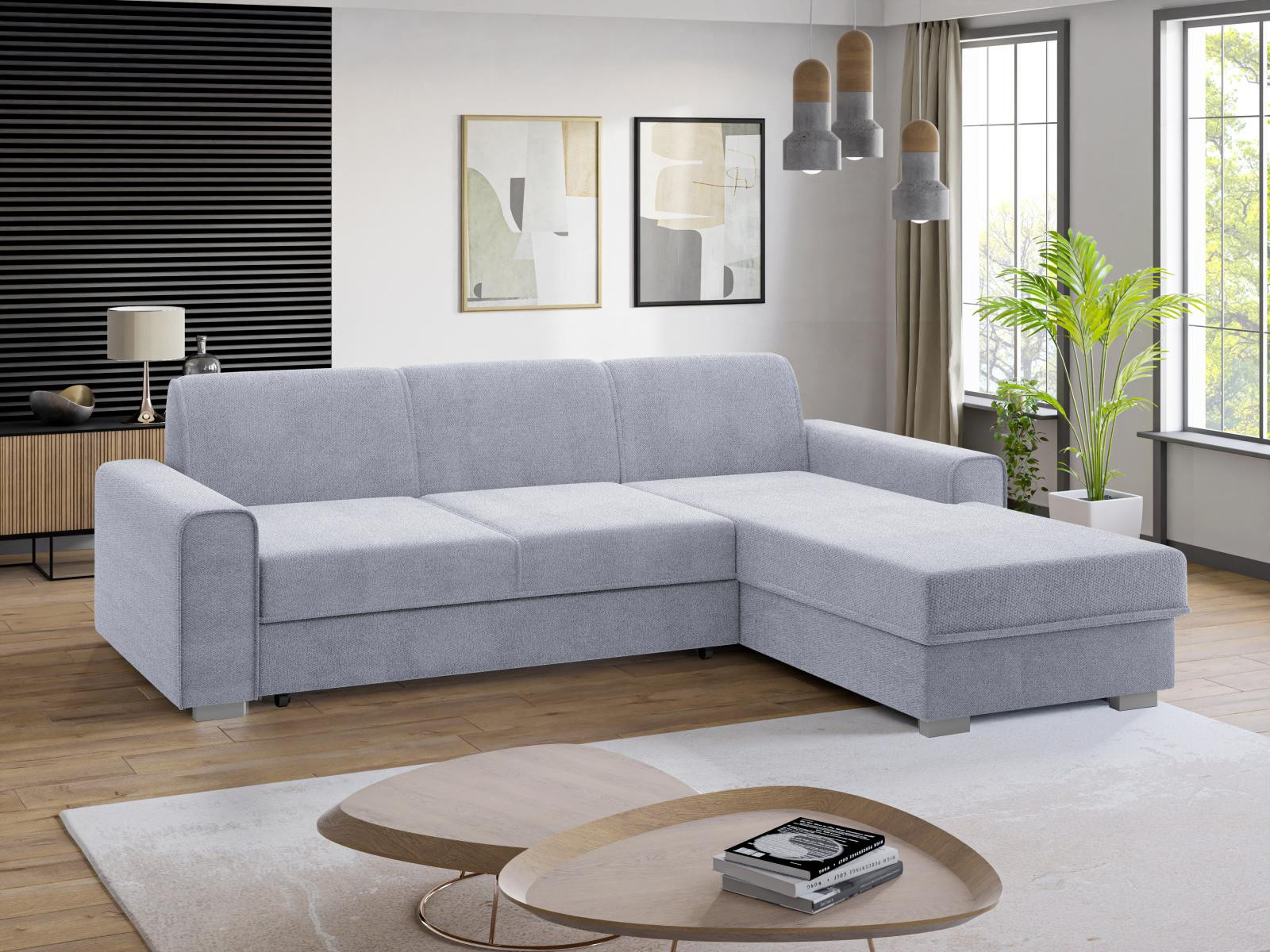 Pohodlná sedací souprava patří k nejdůležitějšímu vybavení každého obývacího pokoje. Sedací souprava Lubor je ideálním spojením pohodlí, praktičnosti a také moderního designu. Tato sedací souprava přímo vybízí k relaxaci např. u sledování televize. Výplň sedáků tvoří kombinace pružin faliste s kvalitní PUR pěnou. Jednoduchým rozkladem pomocí automatu, vznikne lůžko vhodné k příležitostnému spaní. Samozřejmostí je i úložný prostor, který můžete využít třeba na lůžkoviny. Sedací soupravu nabízíme v kvalitní potahové látce, a to v několika barevných provedeních, které také naleznete v naší nabídce. Vyobrazené doplňky a dekorace nejsou v ceně sedací soupravy. Zobrazení barev na fotografii se může od skutečnosti lišit. Fotografie sedací soupravy v rozkladu je pouze ilustrační. Správný barevný odstín je zobrazen na úvodní fotografii.