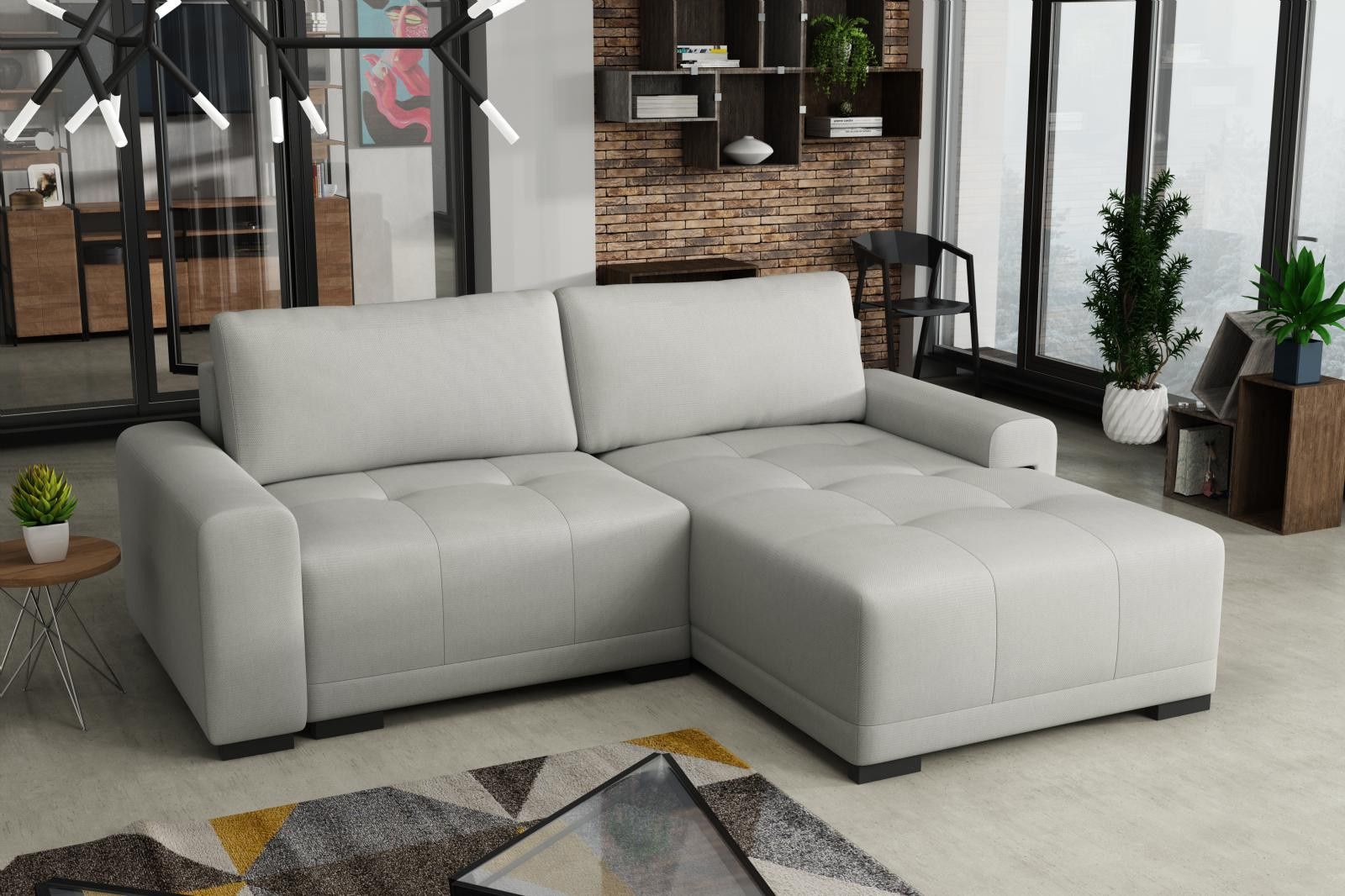 Manon je moderní rohová sedací souprava s nadčasovým designem. Její předností je pohodlí, praktičnost a univerzální použití. Můžete si ji podle potřeby sestavit jako levou nebo pravou, což je výhoda při zařizování obývacího pokoje. Nemusíte přemýšlet do jakého rohu postavíte sedací soupravu, jednoduše ji podle potřeby přizpůsobíte. Pohodlí při sezení zajišťuje kombinace pružin faliste s kvalitní PUR pěnou a velké opěrné polštáře, které jsou odnímatelné. Praktickou stránkou sedací soupravy je úložný prostor a možnost rozložení k občasnému přespání Vaší návštěvy. Sedací souprava je potažena jednobarevnou látkou a v nabídce najdete více barevných variant. V ceně sedací soupravy jsou 2 velké opěrné polštáře. Ostatní vyobrazené dekorace nejsou v ceně. Zobrazení barev produktu na fotografii se může nepatrně lišit od skutečnosti. Správná barva potahové látky je zobrazena na první fotografii. Fotografie sedací soupravy v rozkladu jsou pouze ilustrační.