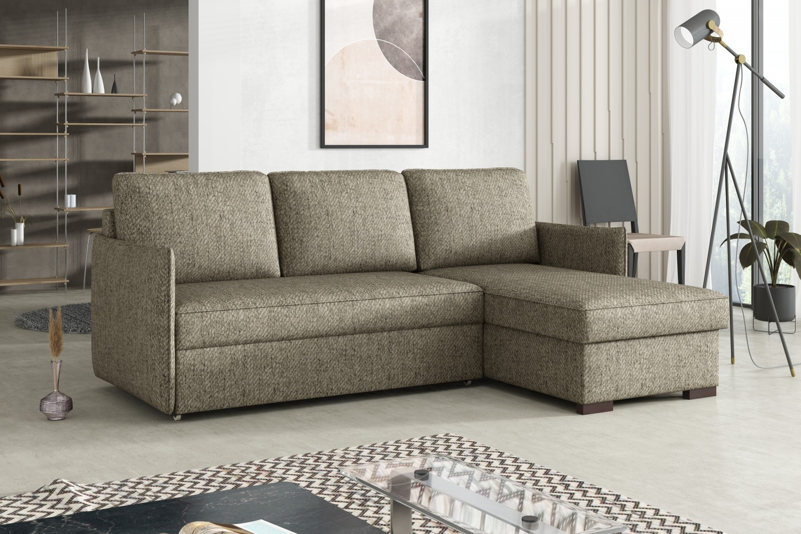 Magie je moderní rohová sedací souprava s nadčasovým designem. Její předností je pohodlí, praktičnost a univerzální použití. Můžete si ji podle potřeby sestavit jako levou nebo pravou, což je výhoda při zařizování obývacího pokoje. Nemusíte přemýšlet do jakého rohu postavíte sedací soupravu, jednoduše ji podle potřeby přizpůsobíte. Pohodlí při sezení zajišťuje kombinace pružin faliste s kvalitní PUR pěnou a velké opěrné polštáře, které jsou odnímatelné, takže si je můžete přizpůsobit svým potřebám. Praktickou stránkou sedací soupravy je úložný prostor a možnost rozložení k občasnému přespání Vaší návštěvy. Sedací souprava je potažena kvalitní látkou a v nabídce najdete více barevných variant. V ceně sedací soupravy jsou 3 velké opěrné polštáře. Ostatní vyobrazené dekorace nejsou v ceně. Správná barva potahové látky je zobrazena na úvodních fotografiích. Ostatní fotografie rozkladu jsou pouze ilustrační.