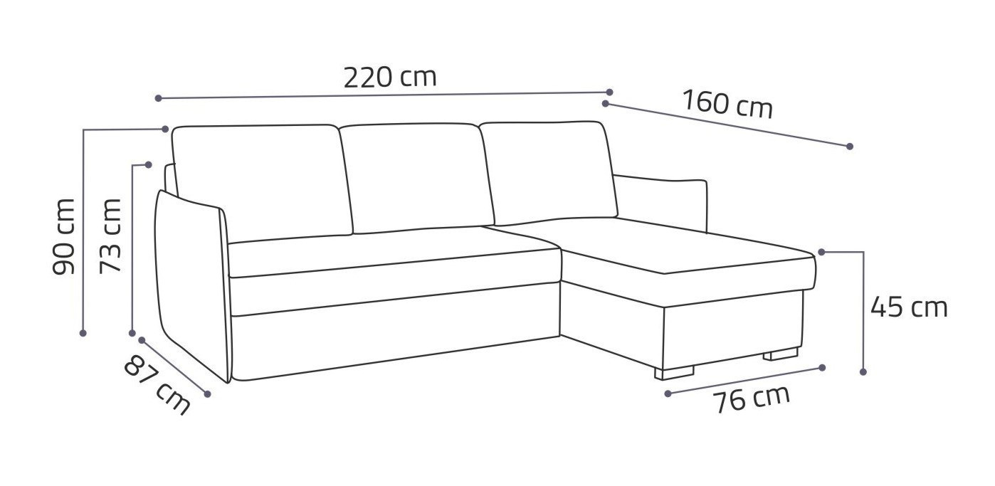 Magie je moderní rohová sedací souprava s nadčasovým designem. Její předností je pohodlí, praktičnost a univerzální použití. Můžete si ji podle potřeby sestavit jako levou nebo pravou, což je výhoda při zařizování obývacího pokoje. Nemusíte přemýšlet do jakého rohu postavíte sedací soupravu, jednoduše ji podle potřeby přizpůsobíte. Pohodlí při sezení zajišťuje kombinace pružin faliste s kvalitní PUR pěnou a velké opěrné polštáře, které jsou odnímatelné, takže si je můžete přizpůsobit svým potřebám. Praktickou stránkou sedací soupravy je úložný prostor a možnost rozložení k občasnému přespání Vaší návštěvy. Sedací souprava je potažena kvalitní látkou a v nabídce najdete více barevných variant. V ceně sedací soupravy jsou 3 velké opěrné polštáře. Ostatní vyobrazené dekorace nejsou v ceně. Správná barva potahové látky je zobrazena na úvodních fotografiích. Ostatní fotografie rozkladu jsou pouze ilustrační.
