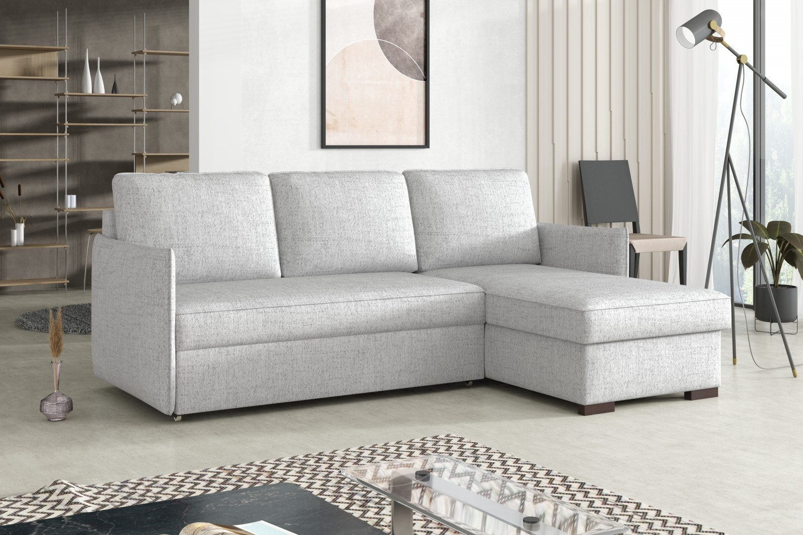 Magie je moderní rohová sedací souprava s nadčasovým designem. Její předností je pohodlí, praktičnost a univerzální použití. Můžete si ji podle potřeby sestavit jako levou nebo pravou, což je výhoda při zařizování obývacího pokoje. Nemusíte přemýšlet do jakého rohu postavíte sedací soupravu, jednoduše ji podle potřeby přizpůsobíte. Pohodlí při sezení zajišťuje kombinace pružin faliste s kvalitní PUR pěnou a velké opěrné polštáře, které jsou odnímatelné, takže si je můžete přizpůsobit svým potřebám. Praktickou stránkou sedací soupravy je úložný prostor a možnost rozložení k občasnému přespání Vaší návštěvy. Sedací souprava je potažena kvalitní látkou a v nabídce najdete více barevných variant. V ceně sedací soupravy jsou 3 velké opěrné polštáře. Ostatní vyobrazené dekorace nejsou v ceně. Správná barva potahové látky je zobrazena na úvodních fotografiích. Ostatní fotografie rozkladu jsou pouze ilustrační.