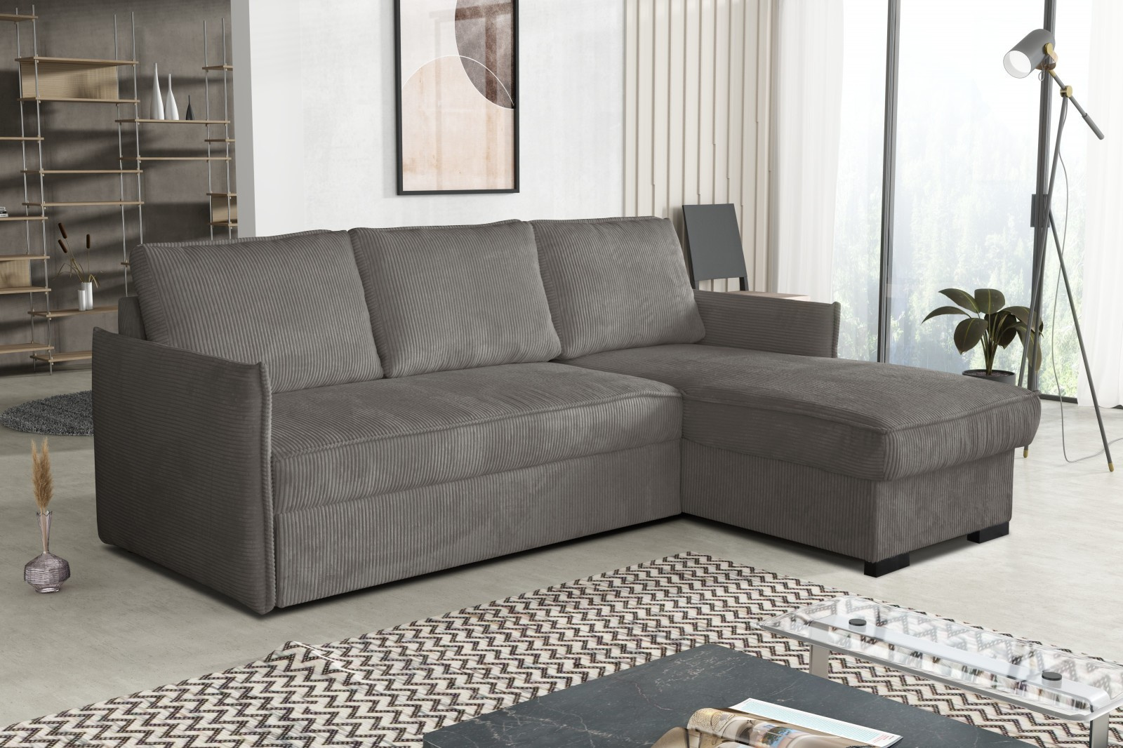 Magie je moderní rohová sedací souprava s nadčasovým designem. Její předností je pohodlí, praktičnost a univerzální použití. Můžete si ji podle potřeby sestavit jako levou nebo pravou, což je výhoda při zařizování obývacího pokoje. Nemusíte přemýšlet do jakého rohu postavíte sedací soupravu, jednoduše ji podle potřeby přizpůsobíte. Pohodlí při sezení zajišťuje kombinace pružin faliste s kvalitní PUR pěnou a velké opěrné polštáře, které jsou odnímatelné, takže si je můžete přizpůsobit svým potřebám. Praktickou stránkou sedací soupravy je úložný prostor a možnost rozložení k občasnému přespání Vaší návštěvy. Sedací souprava je potažena kvalitní látkou a v nabídce najdete více barevných variant. V ceně sedací soupravy jsou 3 velké opěrné polštáře. Ostatní vyobrazené dekorace nejsou v ceně. Správná barva potahové látky je zobrazena na úvodních fotografiích. Ostatní fotografie rozkladu jsou pouze ilustrační.
