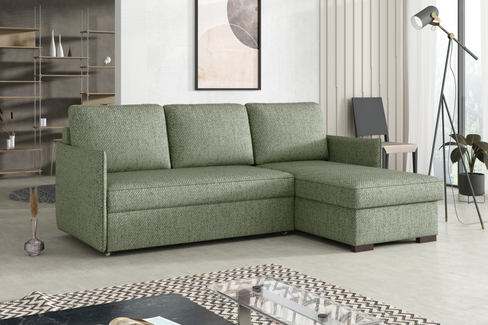 Magie je moderní rohová sedací souprava s nadčasovým designem. Její předností je pohodlí, praktičnost a univerzální použití. Můžete si ji podle potřeby sestavit jako levou nebo pravou, což je výhoda při zařizování obývacího pokoje. Nemusíte přemýšlet do jakého rohu postavíte sedací soupravu, jednoduše ji podle potřeby přizpůsobíte. Pohodlí při sezení zajišťuje kombinace pružin faliste s kvalitní PUR pěnou a velké opěrné polštáře, které jsou odnímatelné, takže si je můžete přizpůsobit svým potřebám. Praktickou stránkou sedací soupravy je úložný prostor a možnost rozložení k občasnému přespání Vaší návštěvy. Sedací souprava je potažena kvalitní látkou a v nabídce najdete více barevných variant. V ceně sedací soupravy jsou 3 velké opěrné polštáře. Ostatní vyobrazené dekorace nejsou v ceně. Správná barva potahové látky je zobrazena na úvodních fotografiích. Ostatní fotografie rozkladu jsou pouze ilustrační.