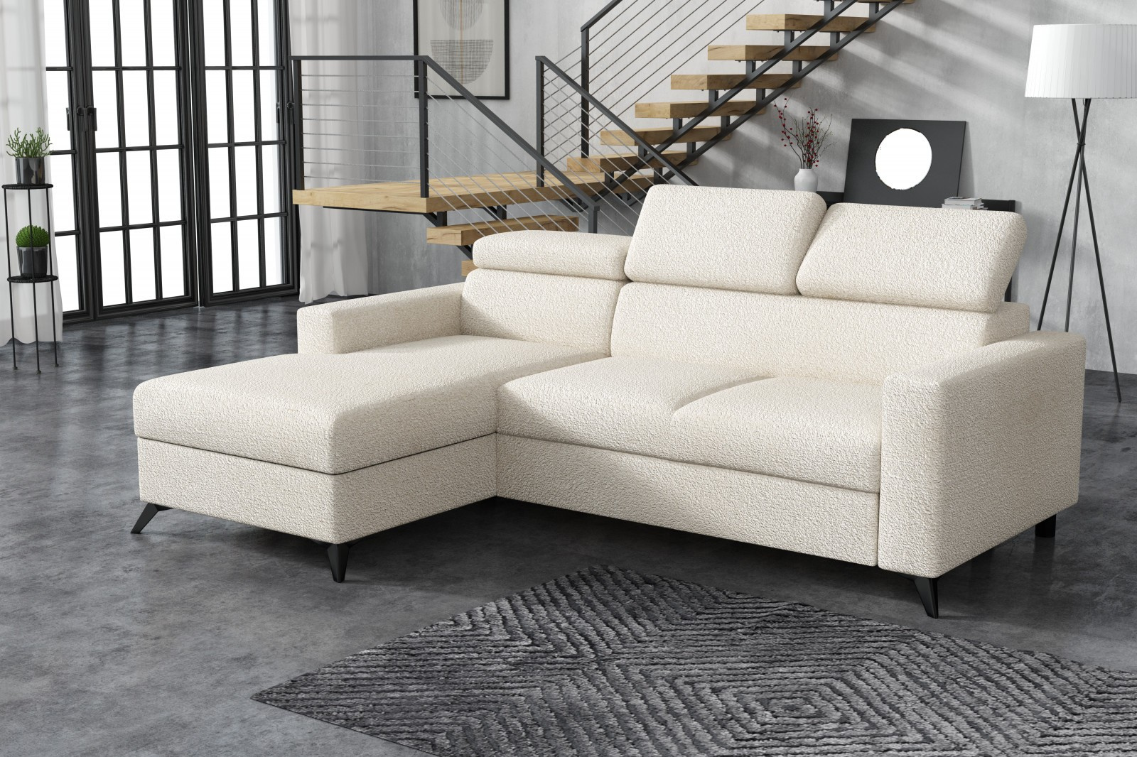 Sedací souprava Mildred osloví každého, kdo preferuje moderní vzhled a zároveň pohodlí a praktičnost. Je potažena kvalitní potahovou látkou. Sedací souprava je velmi pohodlná a dostatečně velká na posezení s přáteli, nebo rodinou. Pro případ, že se návštěva zdrží přes noc, je sedací souprava vybavena rozkladem, díky kterému sedací soupravu jednoduše přeměníte v prostorné lůžko. Sedací souprava má praktický úložný prostor, který můžete využít např., na lůžkoviny. Pohodlí při sezení zajišťuje výplň sedáků, kterou tvoří kombinace pružin faliste s kvalitní PUR pěnou. Komfort a pohodlí při odpočinku zvyšuje polohovací opěrka hlavy. Sedací soupravu nabízíme v levém i pravém provedení.