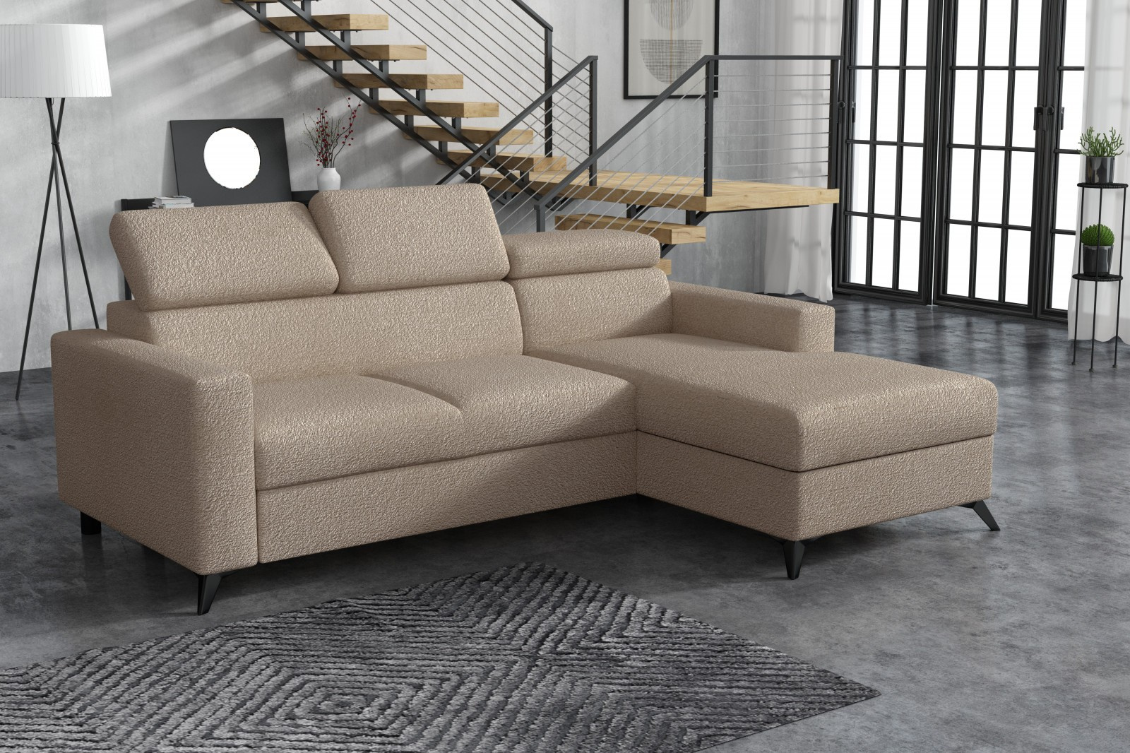 Sedací souprava Mildred osloví každého, kdo preferuje moderní vzhled a zároveň pohodlí a praktičnost. Je potažena kvalitní potahovou látkou. Sedací souprava je velmi pohodlná a dostatečně velká na posezení s přáteli, nebo rodinou. Pro případ, že se návštěva zdrží přes noc, je sedací souprava vybavena rozkladem, díky kterému sedací soupravu jednoduše přeměníte v prostorné lůžko. Sedací souprava má praktický úložný prostor, který můžete využít např., na lůžkoviny. Pohodlí při sezení zajišťuje výplň sedáků, kterou tvoří kombinace pružin faliste s kvalitní PUR pěnou. Komfort a pohodlí při odpočinku zvyšuje polohovací opěrka hlavy. Sedací soupravu nabízíme v levém i pravém provedení.